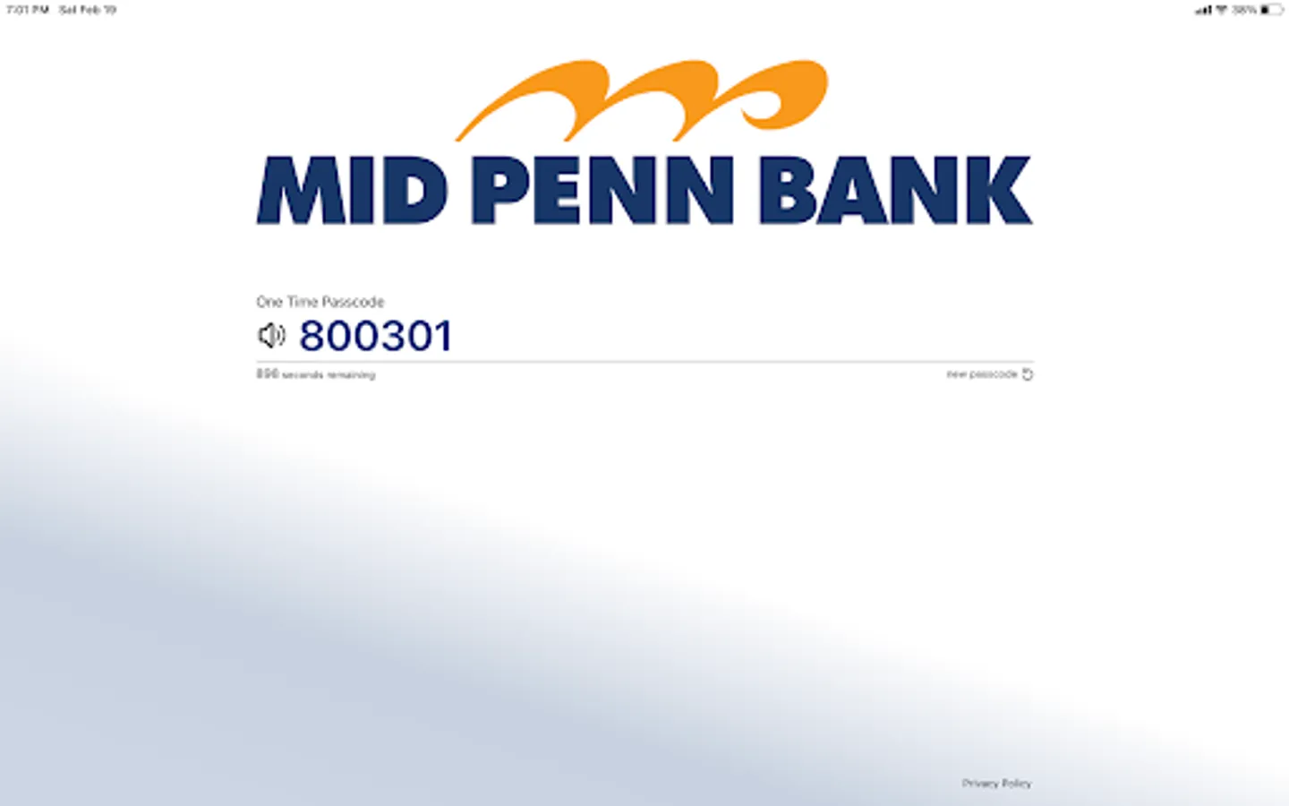 Bank conveniently and securely with Mid Penn Bank's Mobile Security Token.Carrier’s data rates may apply. Contact your carrier for more information.Member FDIC, Equal Housing Lender© 2020 Mid Penn Bank