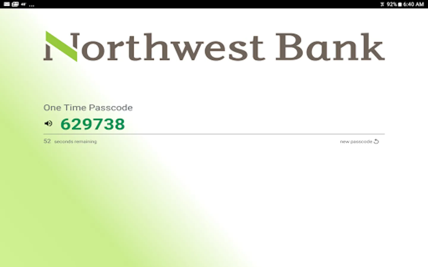 The Northwest Bank Token is part of a robust authentication solution for customers using online and mobile banking. The soft token provides additional security with flexibility to meet our customer’s needs, helps defend against fraud, and enables notifications which inform customers when making decisions.