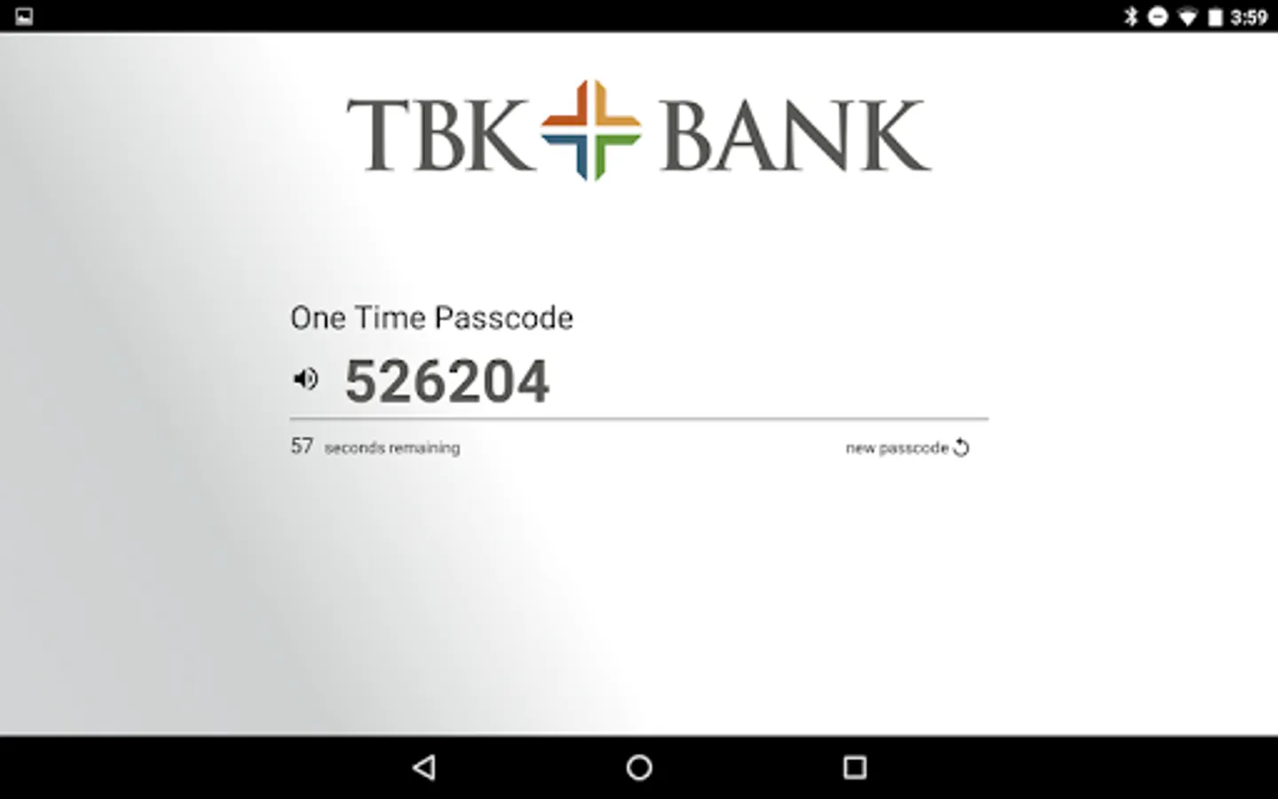 The TBK Mobile Token app is for TBK Bank business clients who have been activated for Treasury Management business services and require token authentication. Activation information is required and will be provided by TBK TM Services to users who have enrolled in TBK Commercial Center or Small Business Center.