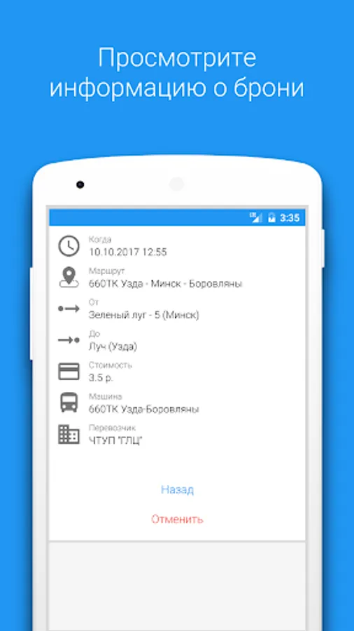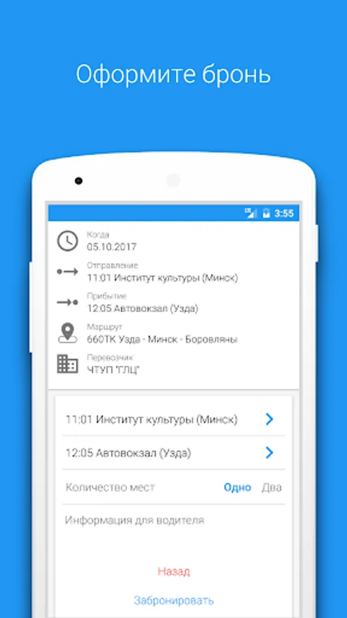 - online booking for 1 or 2 persons (for more places need to communicate with the dispatcher)