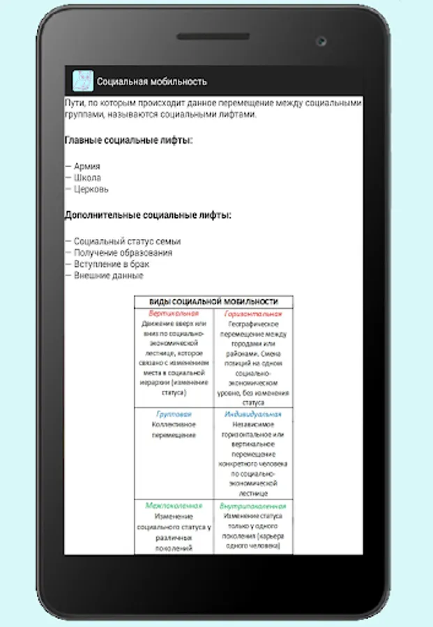 Excellent application which can be your good assistant in the study of social science and the preparation for the exam on the subject! Each section in the application is written in simple and understandable language, and thanks to a variety of charts and tables in the annex, the study material will be even more convenient. It should be noted that the information used in the application, was taken from reliable sources, directories and social studies textbooks.