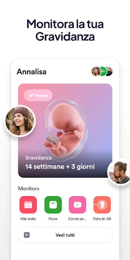 Developed with international specialist doctors from important scientific societies, iMamma allows you to monitor the fertile period, pregnancy week by week and baby development from 0 to 12 months. Invite your partner or relative to the app: you will experience this fantastic journey together.