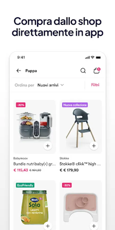 Create your child's profile with a personalized wall and albums. Get informed with the videos of the newborn's growth and its development with the advice of the Montessori Foundation, calculate the child's growth percentiles, use the tools to manage the newborn month by month. You will find a dedicated shopping selection and chat for new parents.
