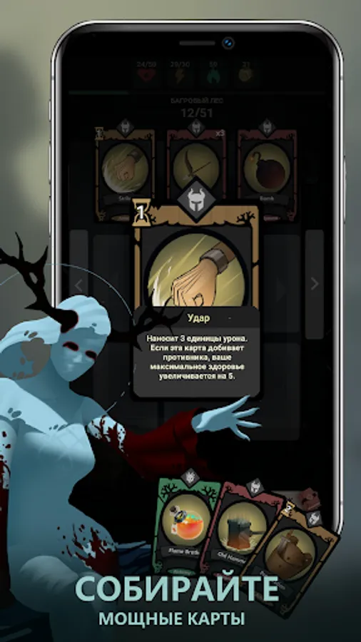 Crimson Deep - atmospheric card strategy. Collect a deck of cards from defeated enemies, combine cards for greater efficiency and get to the heart of the Crimson Abyss!