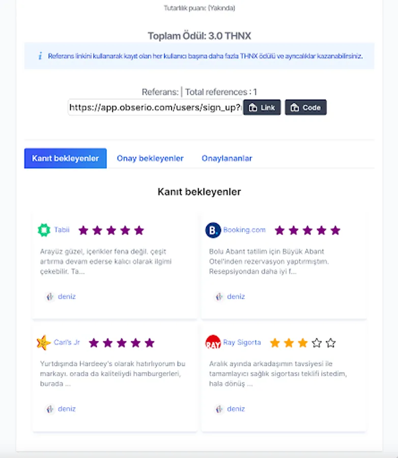 Obserio is a “Customer experience marketplace and loyalty platform”.