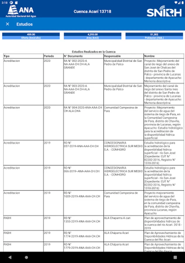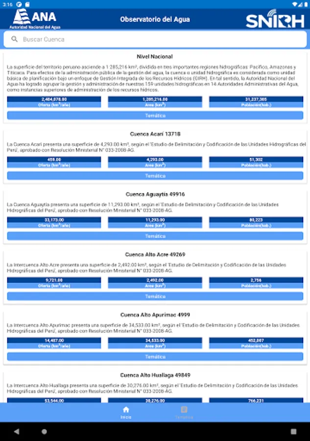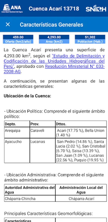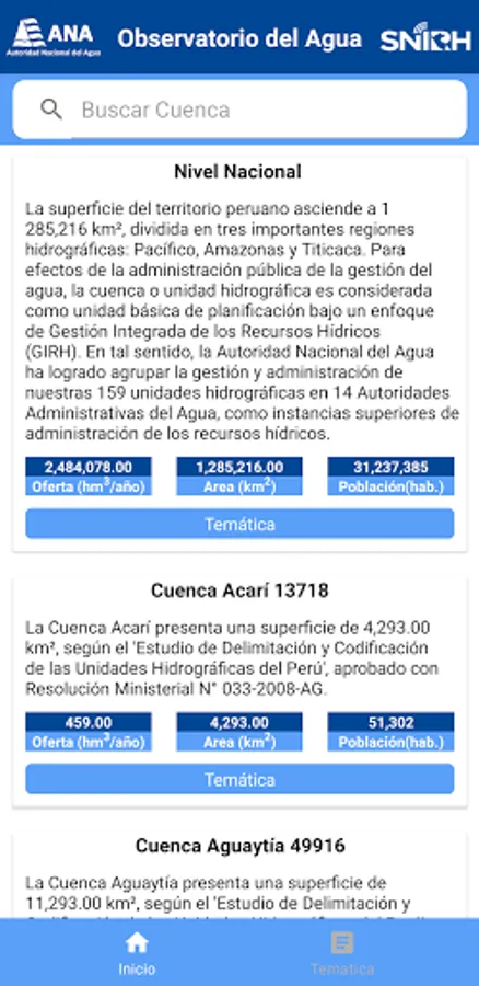 In this application we can obtain information on the different themes of the basins of Peru