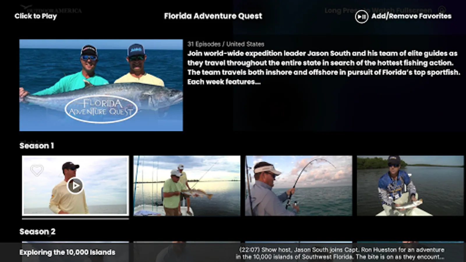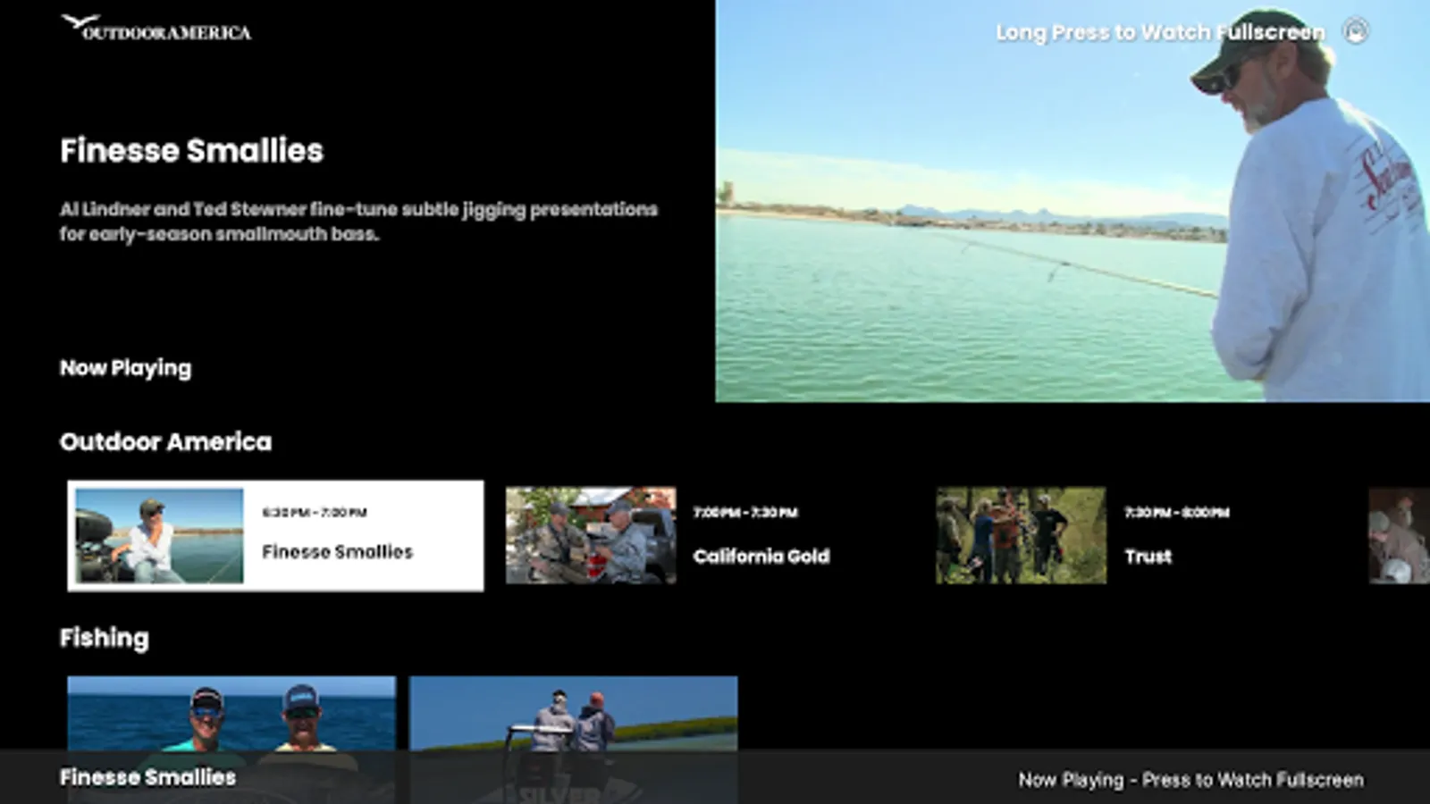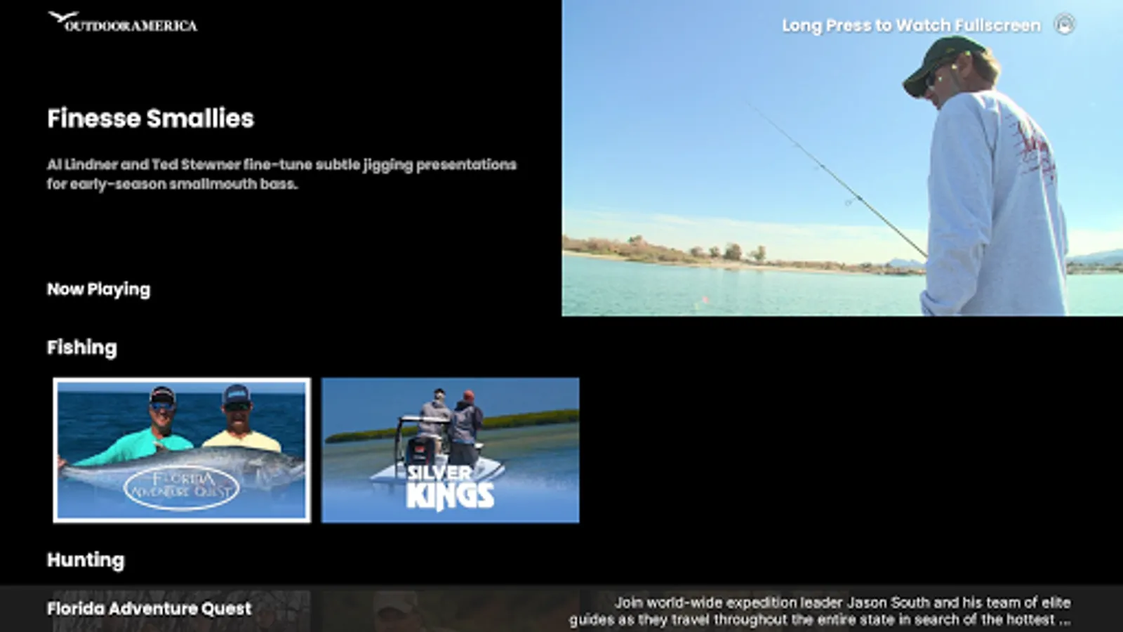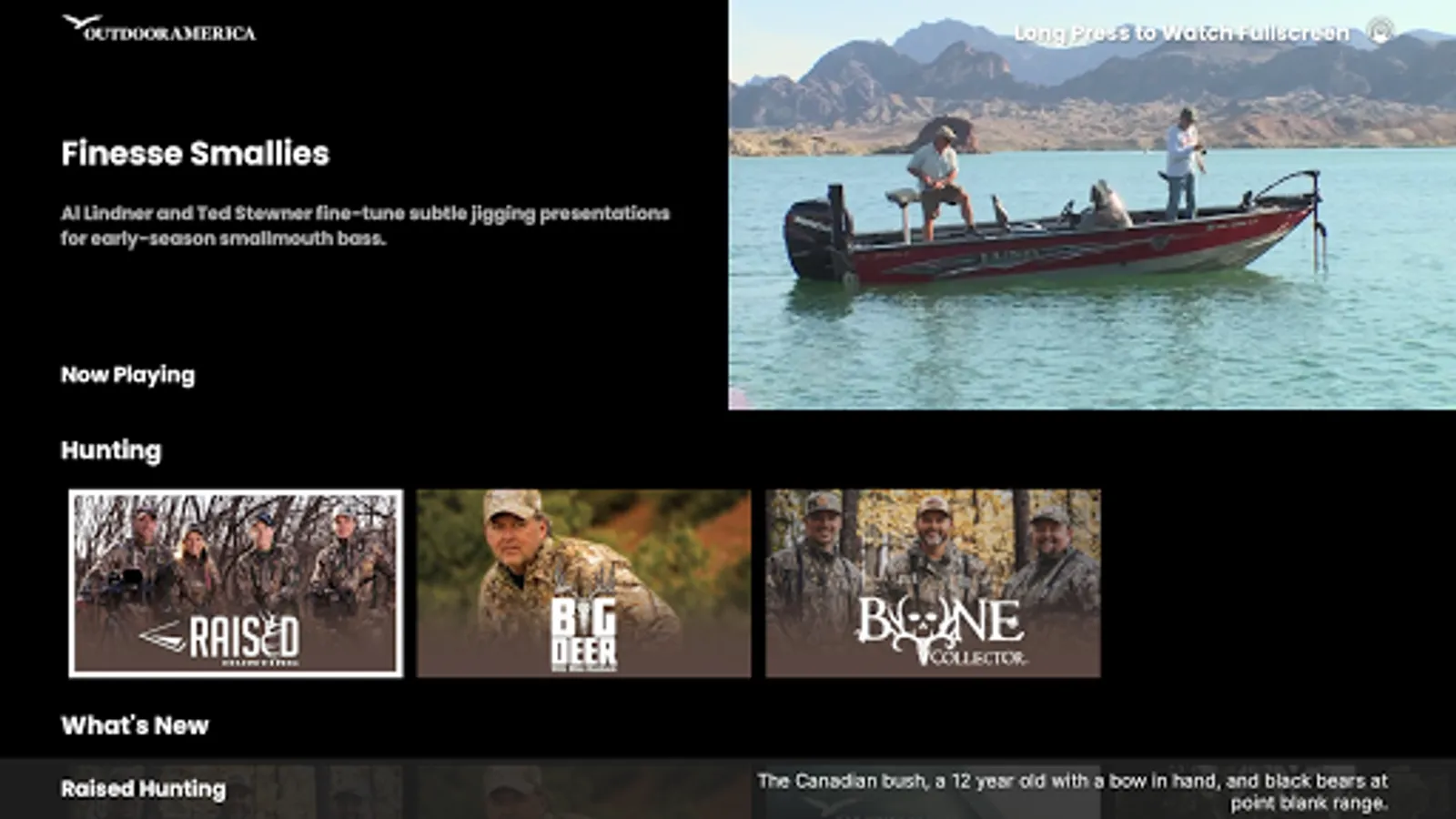 Outdoor America features fishing, hunting and activity programming to entertain, inform and inspire viewers to live their best life outside enjoying the vast natural resources in the United States.