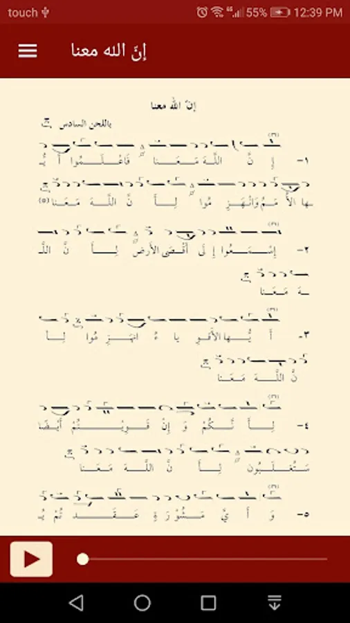 نقلاً عن مجموعة المنشورات الموسيقيّة لكنيسة الروم الملكيّين الكاثوليك - المجلّد الثالث