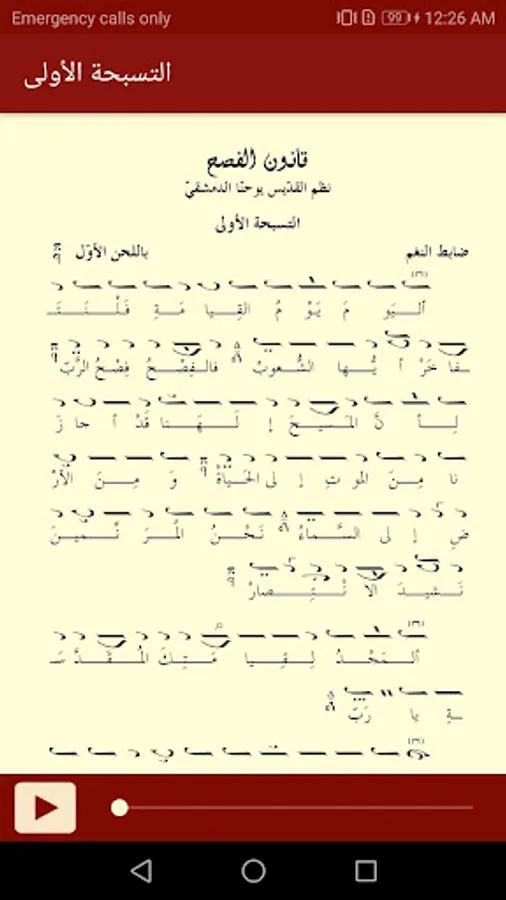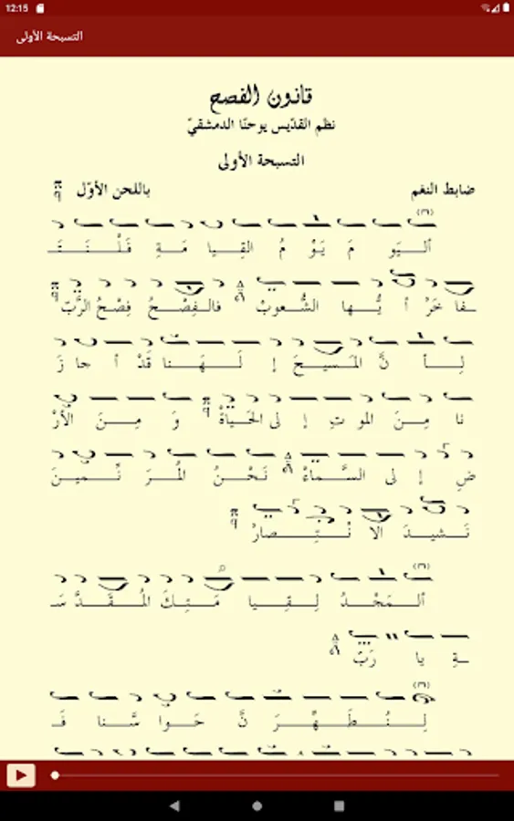 نقلاً عن مجموعة المنشورات الموسيقيّة لكنيسة الروم الملكيّين الكاثوليك - المجلّد الثالث