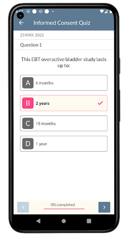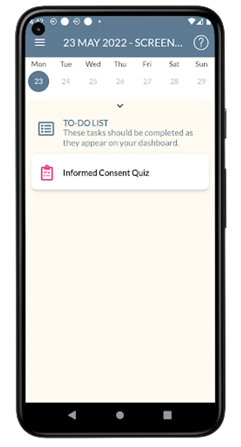 Upon download, the participants create a OAB CDUT account and complete the Informed