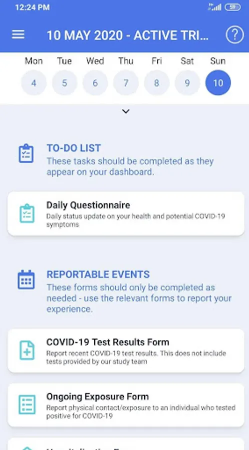 • Tracks and record exposure, symptoms, medications, health history medical visits and tests through self-reported data