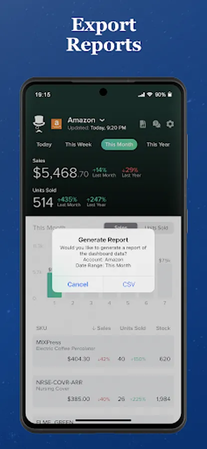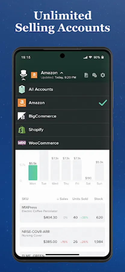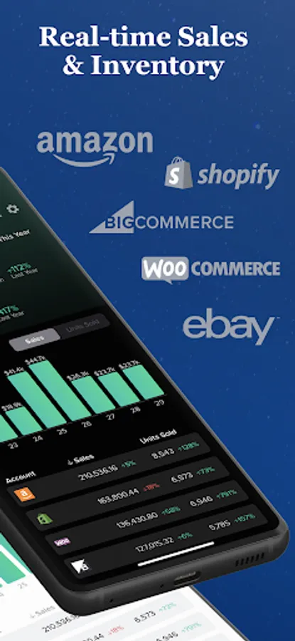 Get real-time insight and metrics into your sales and inventory data across all of your selling platforms in one easy to use app. Glance has a wide variety of built in filters and sorting functionality so you can view your sales and stock data in any way that makes the most sense for your business.Link seller central accounts like Amazon, Shopify, BigCommerce & Etsy