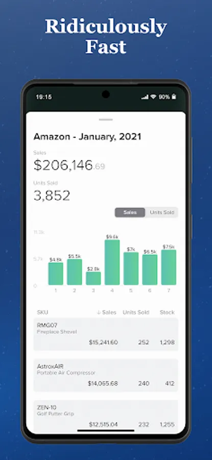 Stay up to date and with sales from your platforms in real-time. The Glance dashboard often reports sales and inventory numbers before the seller account dashboards. Get growth-driven insights and turn your information into smart business moves.Extremely Simple