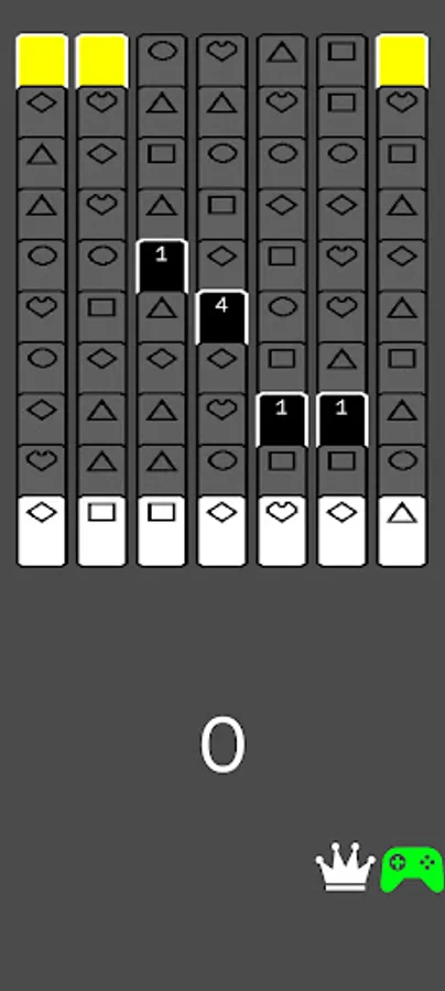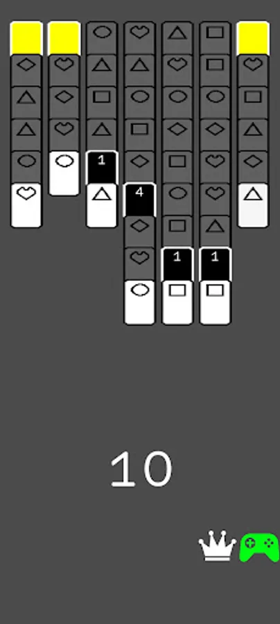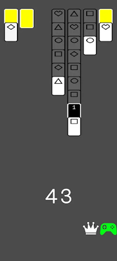 Match 2 (or 3 if in 3 card mode) cards of the same shape to clear to the 3 Yellow Cards. Clear 3 yellow cards to win the game. Remove the Yellow Cards in as few moves as possible.