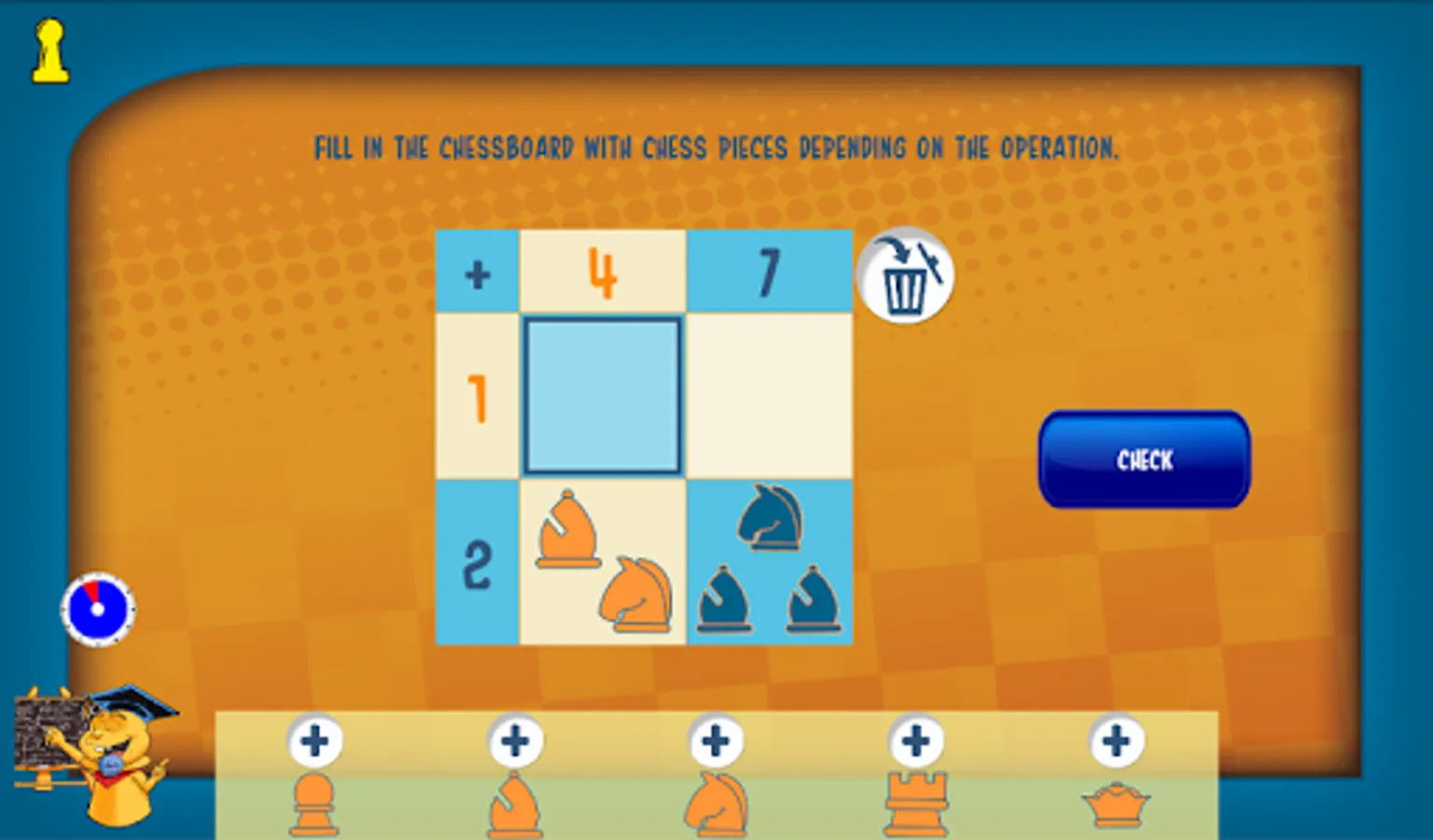 Learn and improve . Game with hundreds of questions and mathematical challenges about chess.