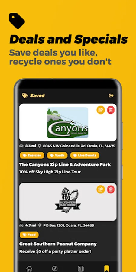 Swipe through all of the best deals and live events from every industry to discover what the city truly has to offer. We make it very simple- Save the deals you want to use, and recycle the ones you don’t. Whether you’re looking to plan a weekend on the town or want to do some mid-week shopping, OcalaNow has something for everyone that will make your experience in Ocala the best possible, while helping out the local businesses that make this city one of the fastest growing metropolitan areas in the country!