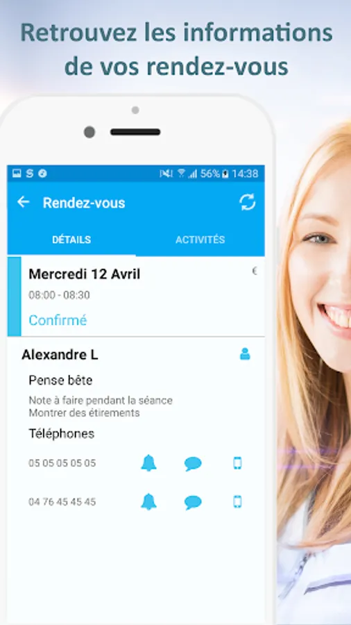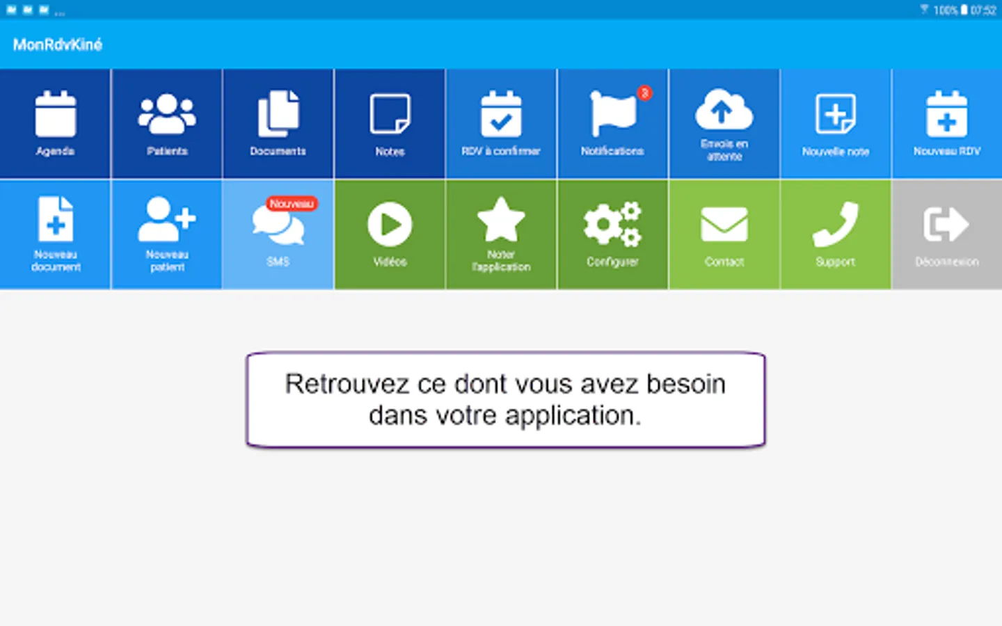 * The sending of SMS can be done from your mobile plan without supplement in your subscription MonRdvKiné.