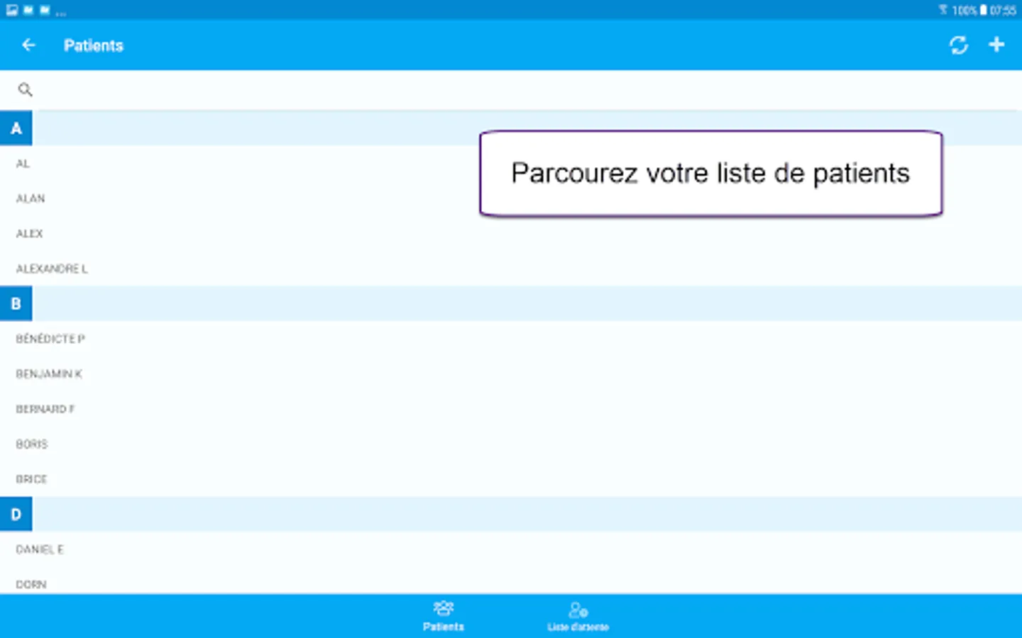 ◆ Easily contact your patients whether they are on the waiting list or not. The app allows you to send SMS or call without having to enter patient data into your contacts.
