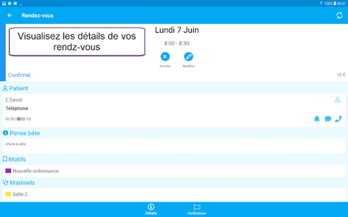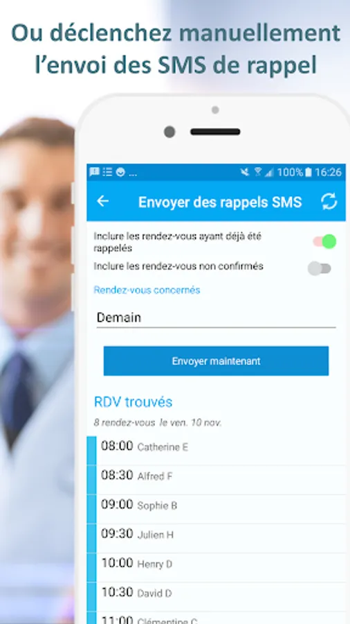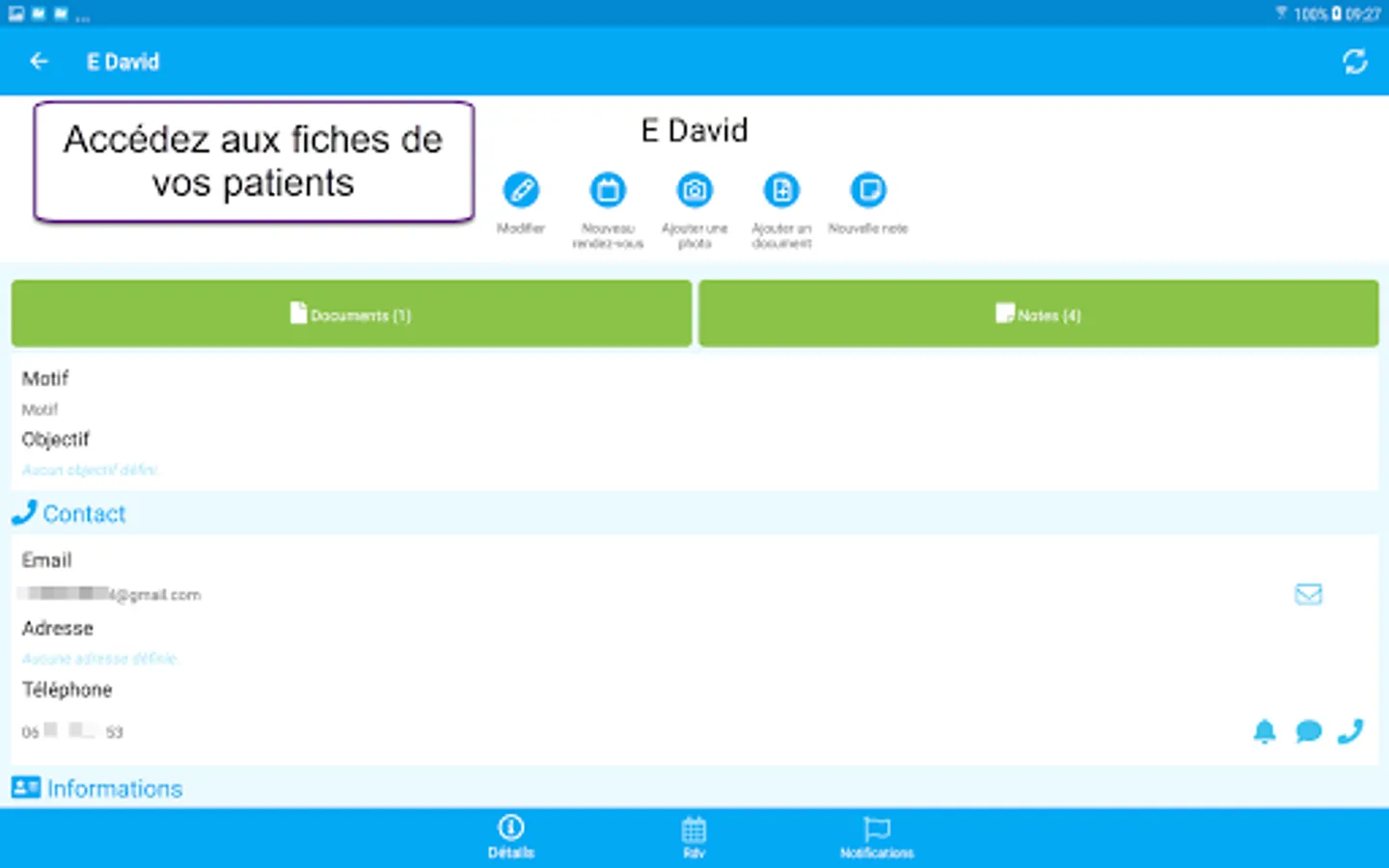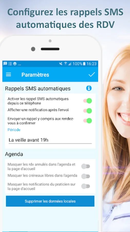 ► To reduce forgetfulness, you can send a summary by email or activate the SMS reminder (for all patients or case by case). The summary by email allows to add a reminder 1h before the appointment in the agenda of the smartphone of the patient.