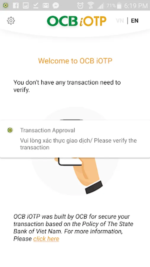 OCB iOTP, is Soft OTP Advanced application, was built by OCB for secure your online transactions based on Policy of The State Bank of Viet Nam.