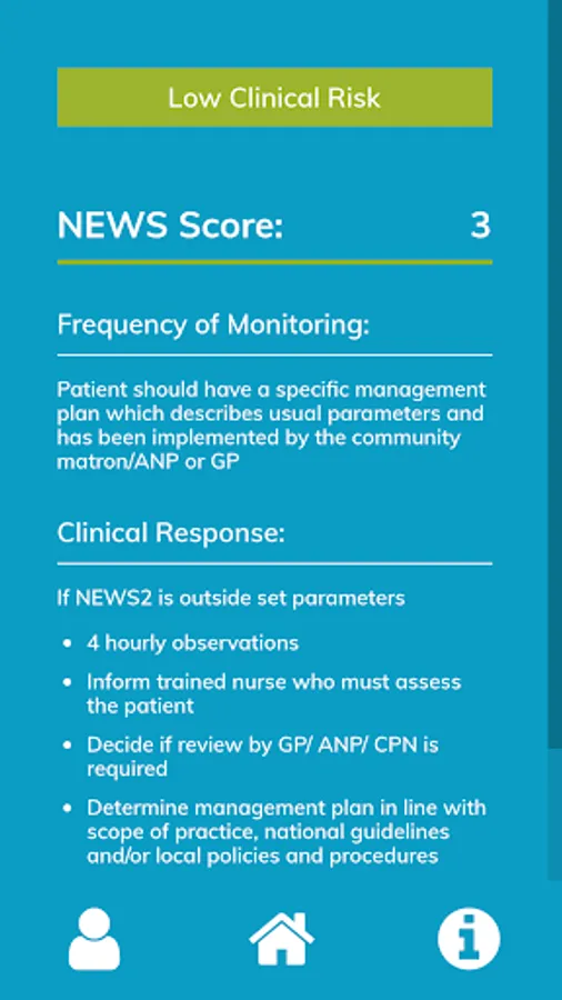 This application is designed to aid in the calculation of NEWS scores for individual patients and to suggest the most appropriate clinical response as a factor of area of practice. It is not a diagnostic or patient management tool. By using this app you understand and accept that the RCP and NWL CLAHRC: