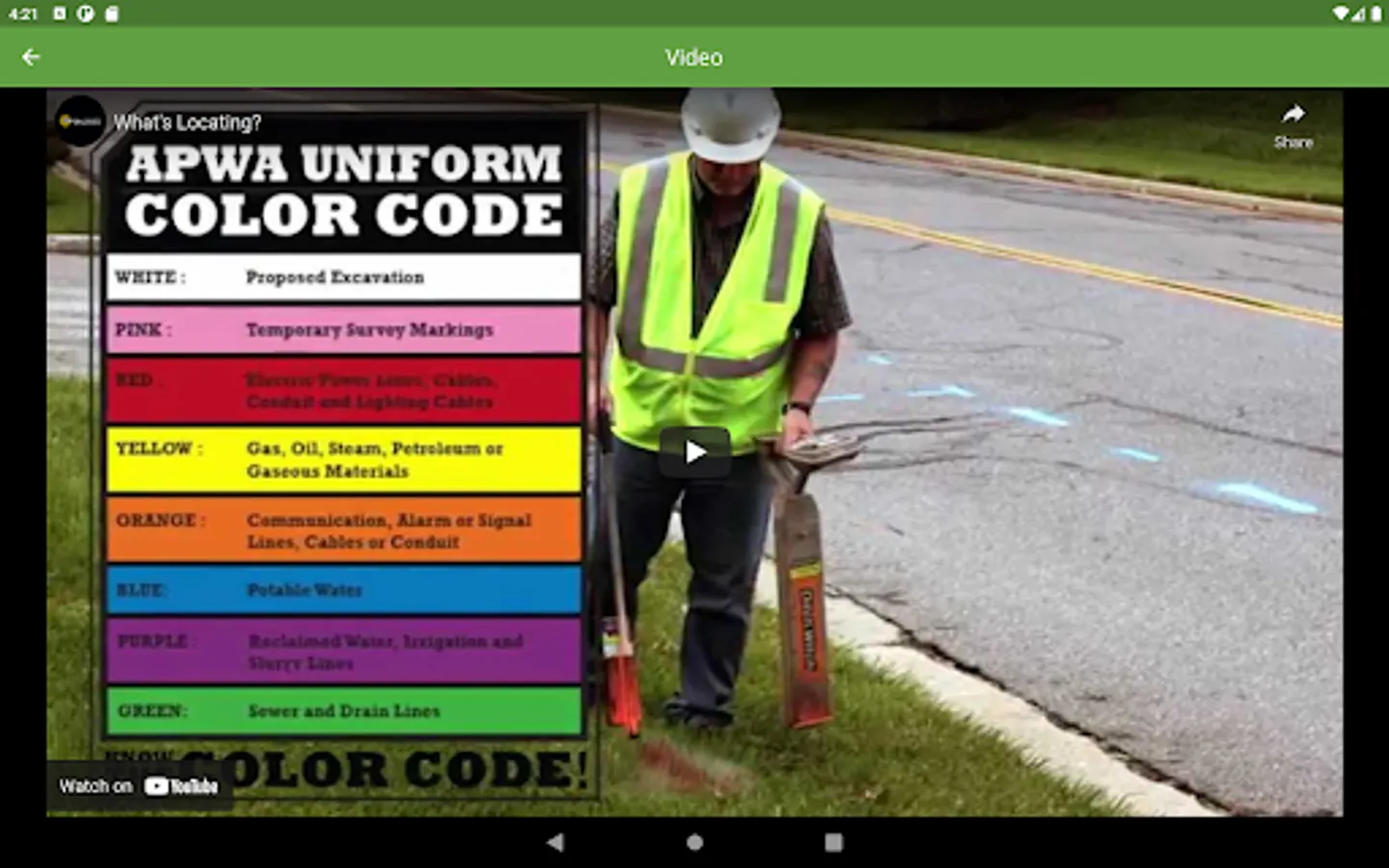 Access a Resource Center with links to the KCUC handbook, excavator guide, color codes and instructional videos. View and share these items with the click of a button.