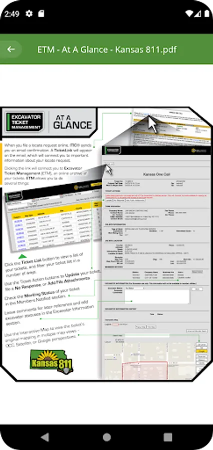 Excavators, homeowners, and facility operators can use the Kansas 811 app to easily and quickly manage locate requests. Anyone planning to excavate in Kansas can use the app to initiate, manage and monitor a locate request prior to excavation. Facility operators can use the ticket management feature to provide a positive response to excavators.