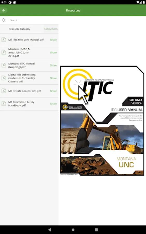 Access a Resource Center with links to the Montana 811 handbook, excavator guide, color codes and instructional videos. View and share these items with the click of a button.
