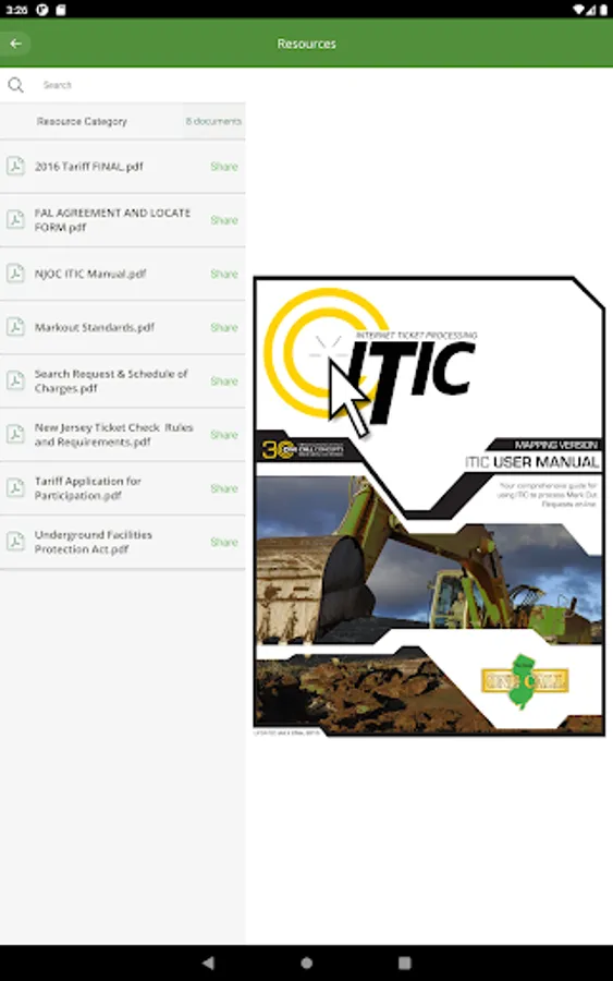 Access a Resource Center with links to the New Jersey One Call handbook, excavator guide, color codes and instructional videos. View and share these items with the click of a button.