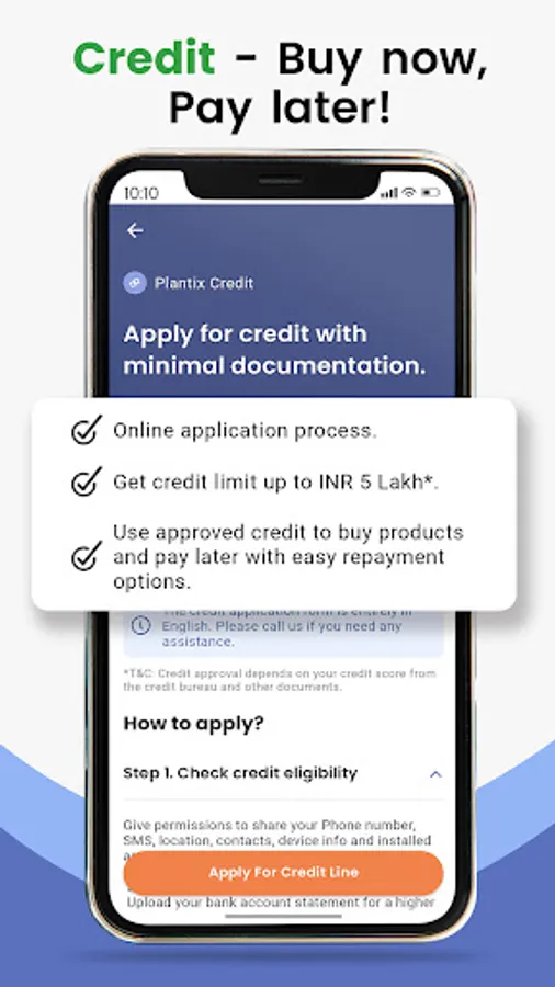 On the Plantix Partner App, agri-retailers can make seamless purchases without worrying about payment. They can avail credit limit of up to ₹30 Lahks* Interest-Free for the first month. Retailers can also get instant credit up to ₹50,000*.