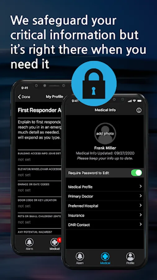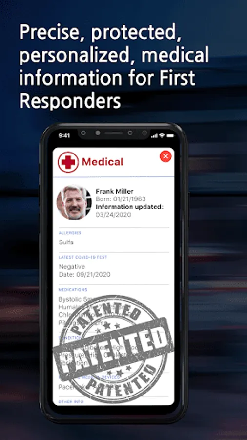 emCall displays your medical information for first responders so they can focus on providing you the right treatments, right away.