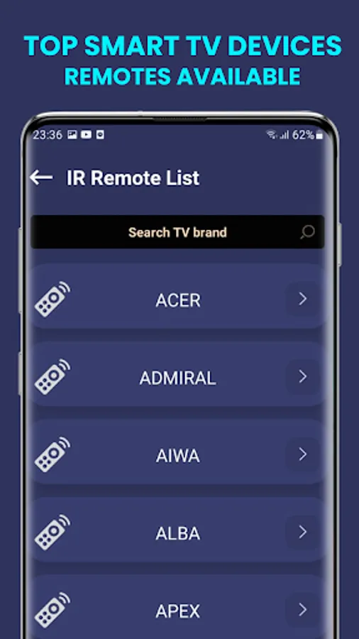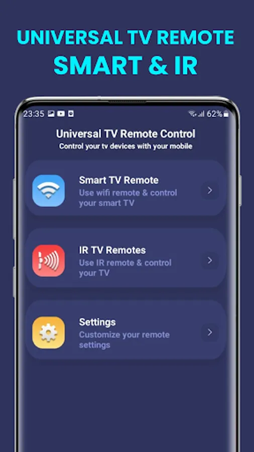 Requirements Universal TV Remote Control App - Your Mobile Phone must be IR supported otherwise you cannot use this app, but don't worry we added a Wi-Fi Feature to this app. If you have Smart TV or Wi-Fi Supported then you have to connect your mobile phone and Smart TV on the same internet otherwise the app will not work.