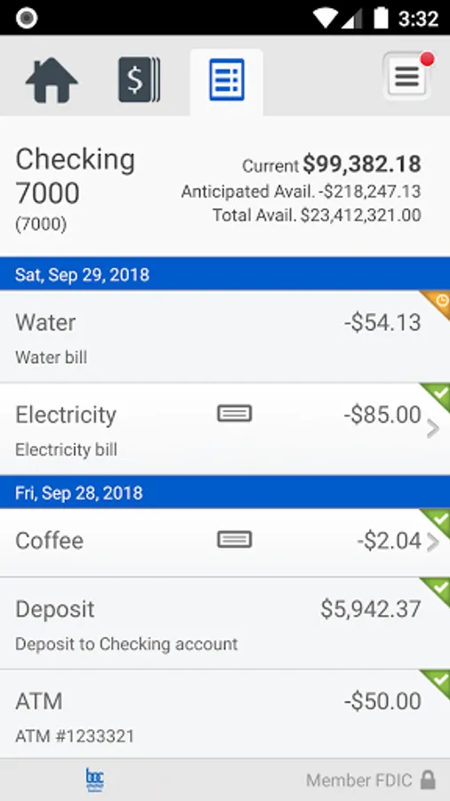 • Approve transactions scheduled through Business Advantage including bill payments and transfers