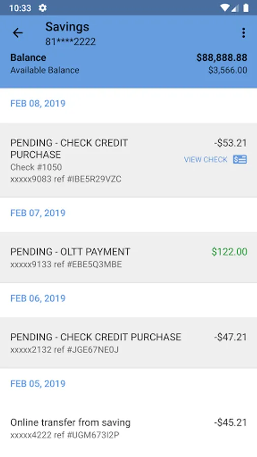 • View recent transactions, including check images
