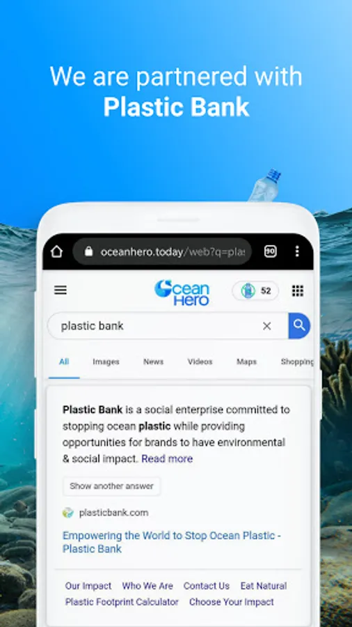 OceanHero is a search engine like any other. However, for every five searches you do, you recover one ocean-bound plastic bottle.