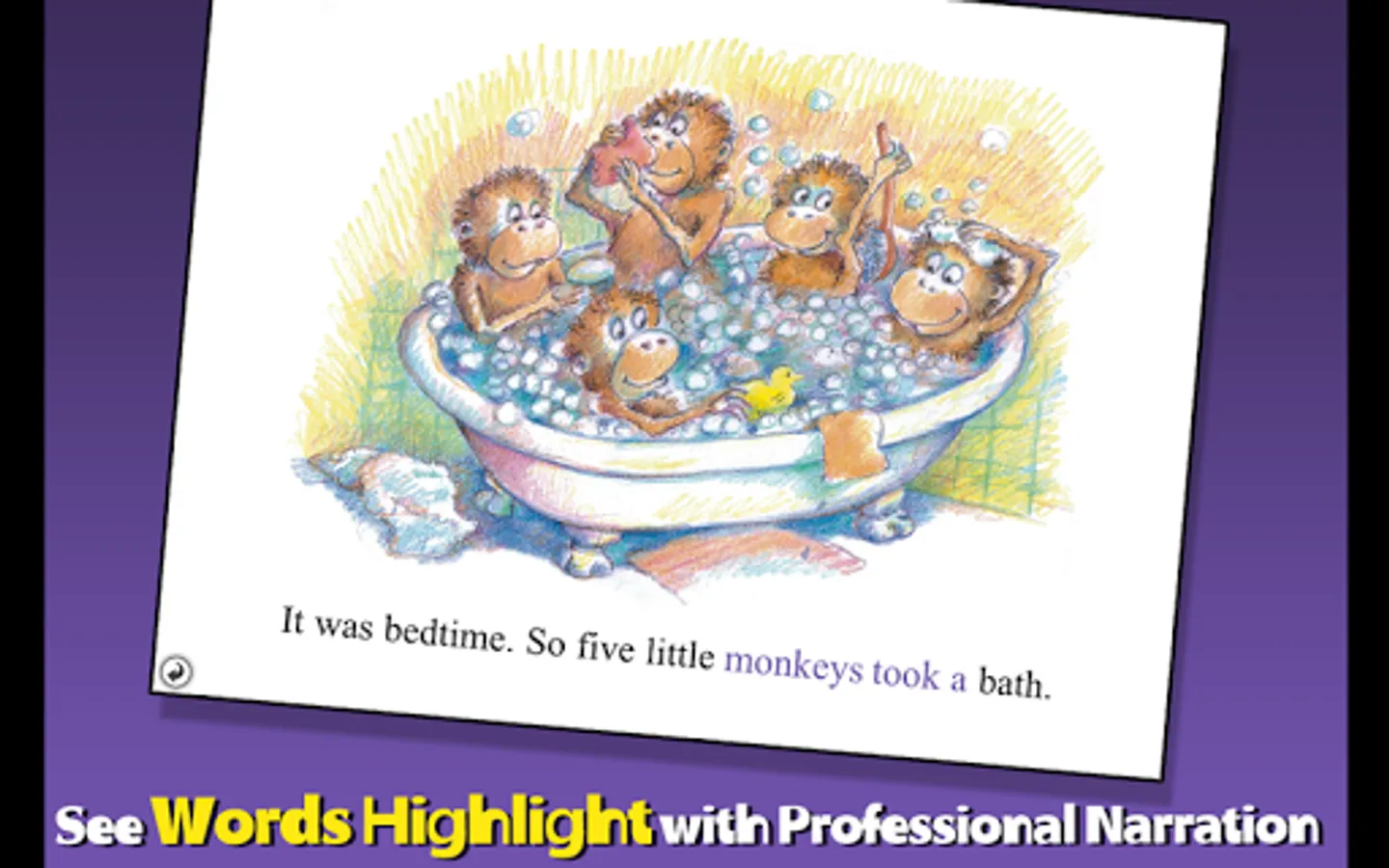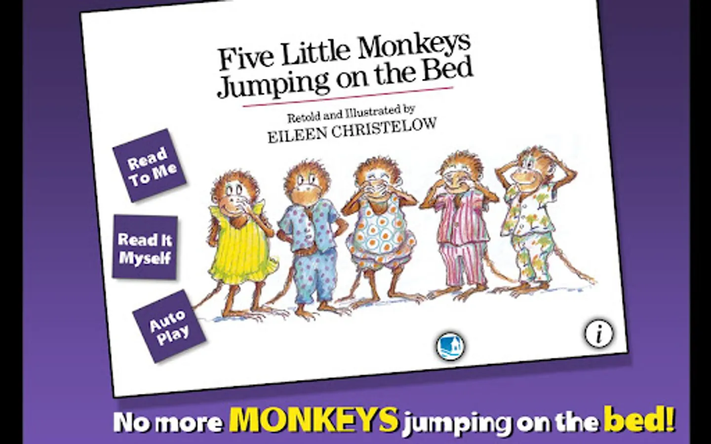 Join the Five Little Monkeys in this interactive book app as they jump on the bed after they say good night to Mama! Explore pictures, learn new vocabulary, and follow along with three fun ways to read! Jump inside to find out what trouble the Monkeys get into as they jump on the bed!