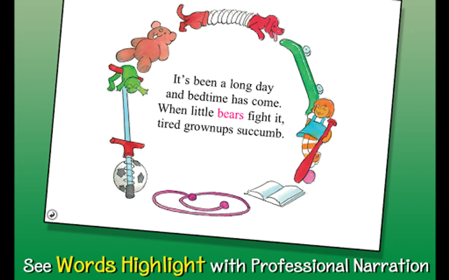 - ENCOURAGE literacy skills with highlighted narration