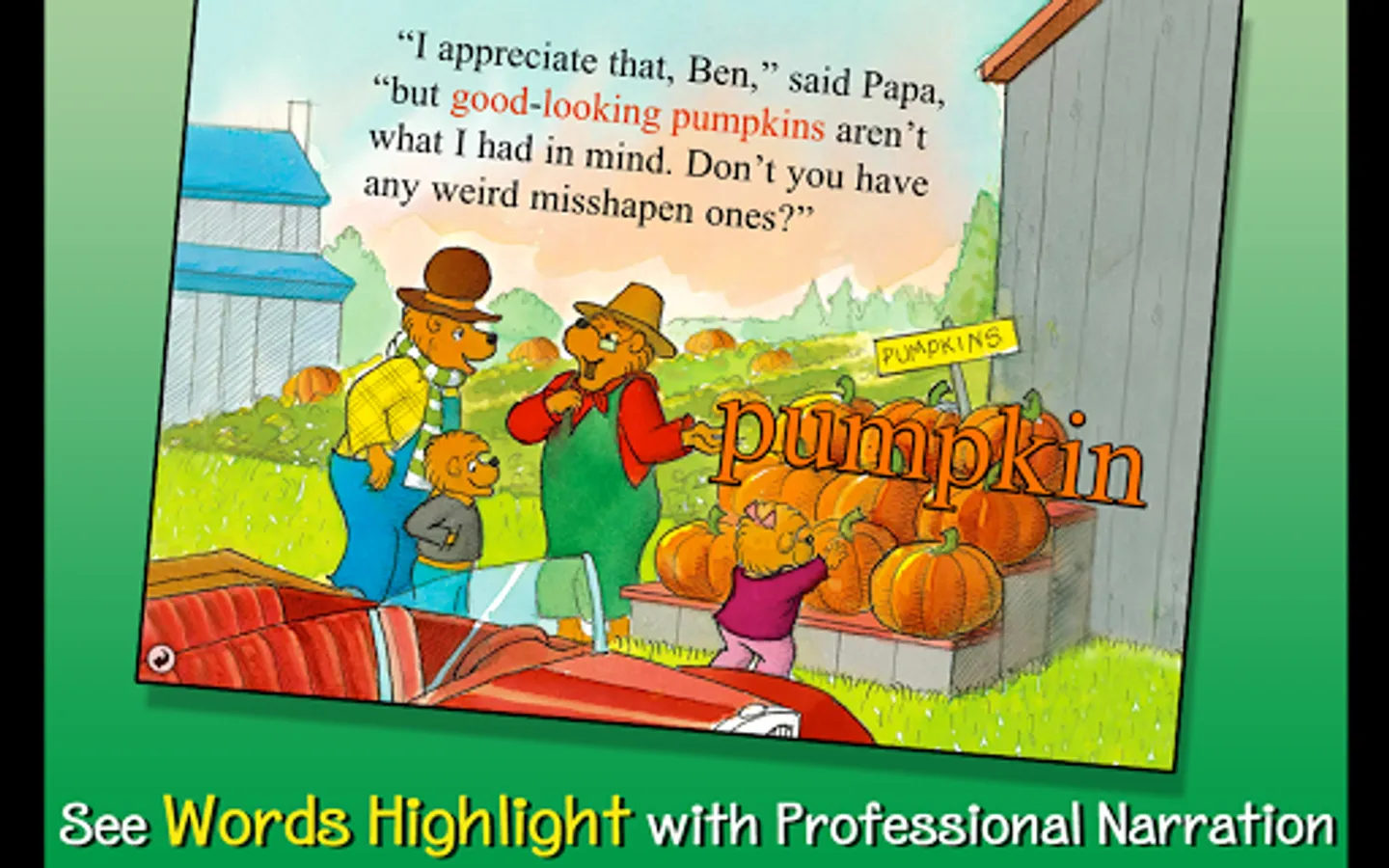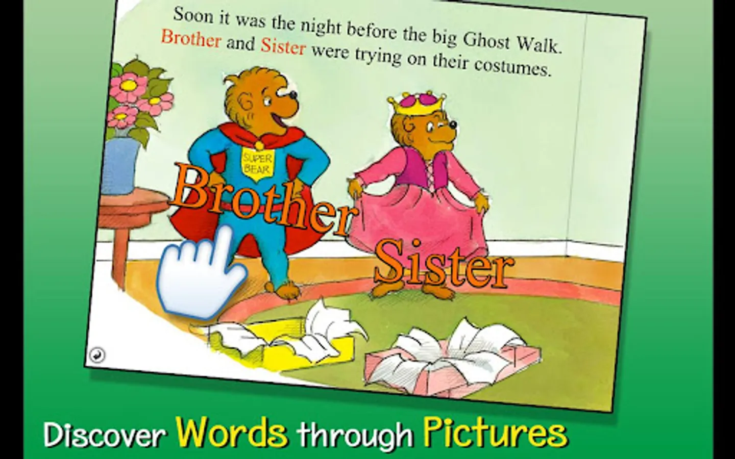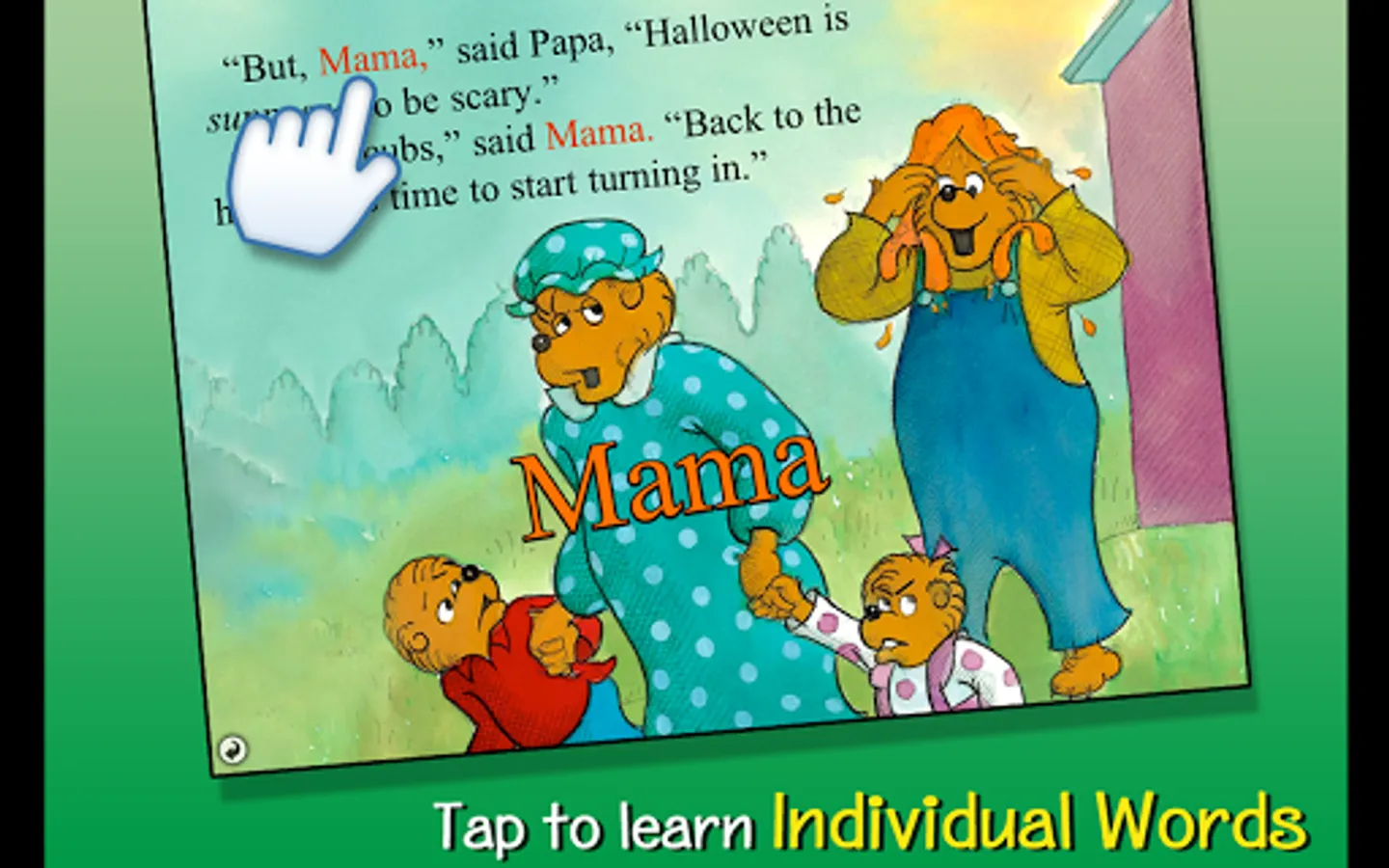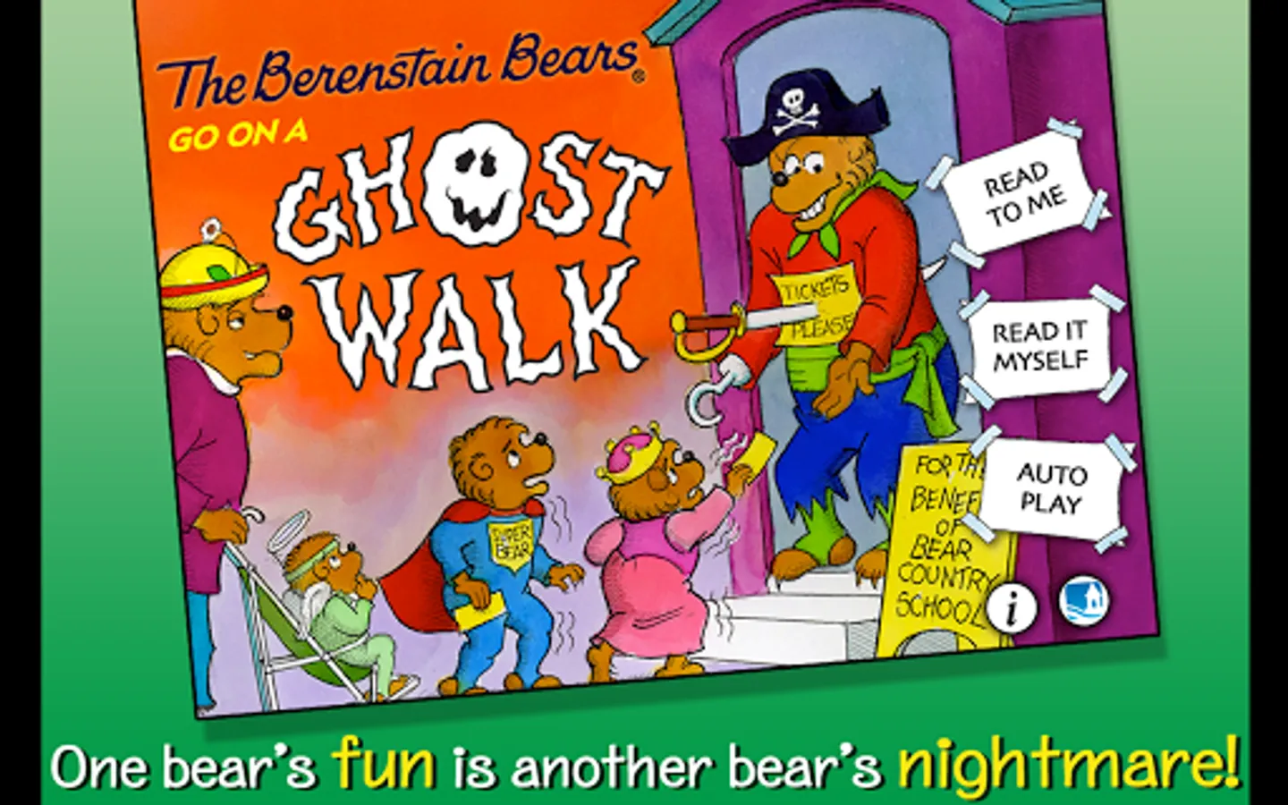 Join the Berenstain Bears in this interactive book app as they prepare for the Bear Country School's Halloween ghost walk! Explore pictures, learn new vocabulary, and follow along with three fun ways to read! Will Papa Bear get carried away with his all his frightening ideas and turn the most haunting night of the year into a Bear's nightmare?