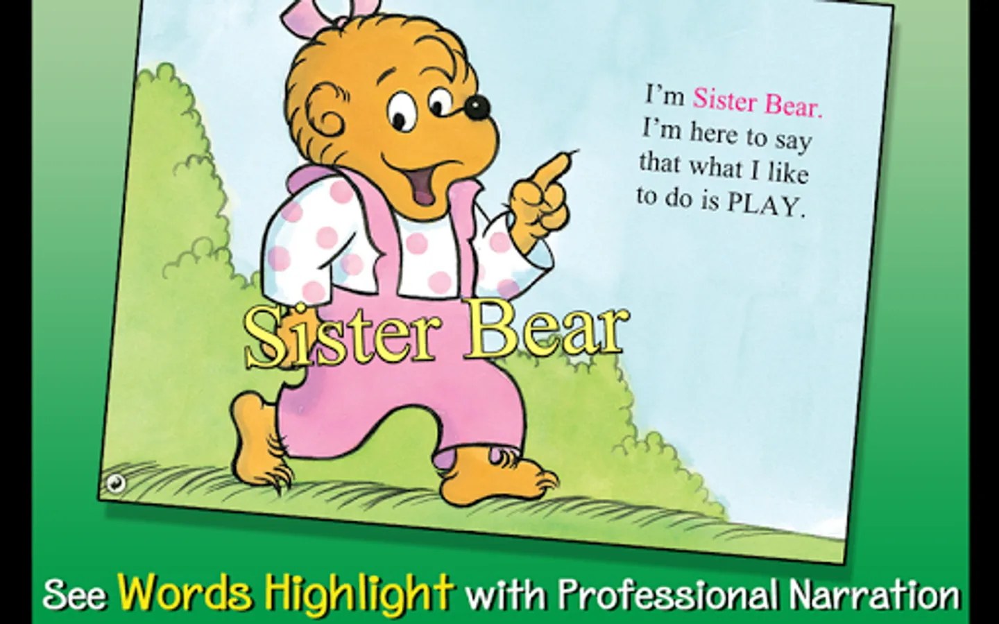 Join the Berenstain Bears in this interactive book app as Sister Bear learns how fun it is to share toys with all her friends! Explore pictures, learn new vocabulary, and follow along with three fun ways to read! Share in Sister Bear's joy as she learns that God has blessed her with great friends and lots of time and toys to share.