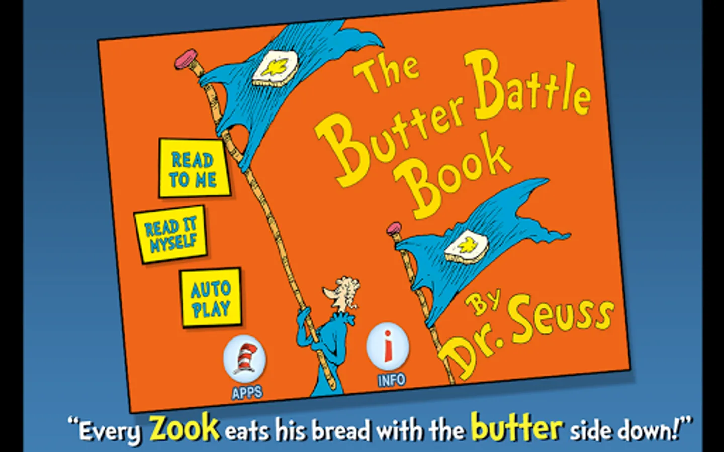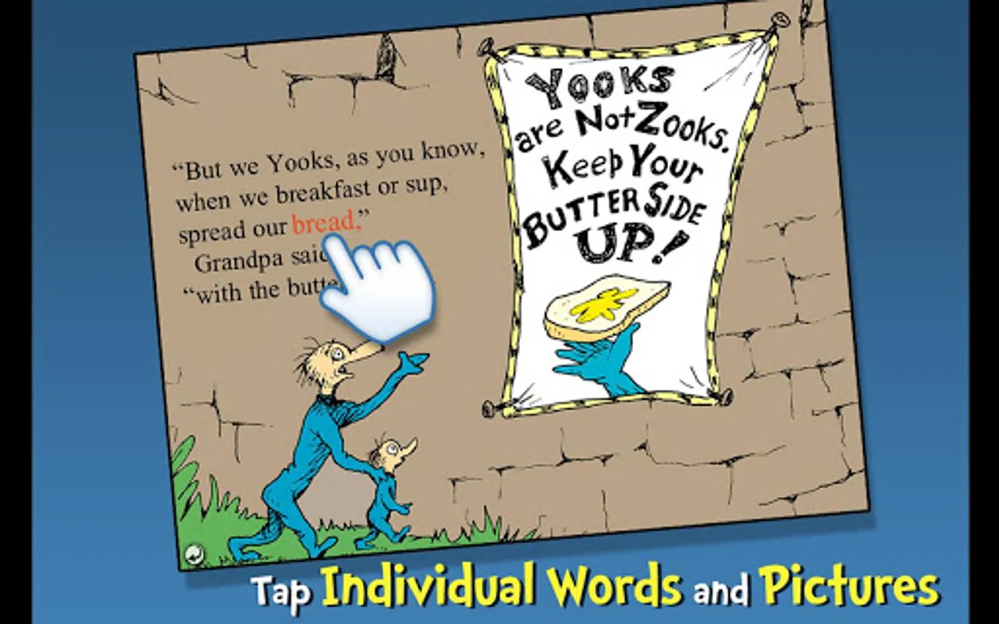 Join the Yooks and Zooks in this interactive book app as they argue over eating bread with the butter-side up or butter-side down! Explore pictures, learn new vocabulary, and follow along with three fun ways to read! Who will win the great battle between the Yooks and Zooks in the end?