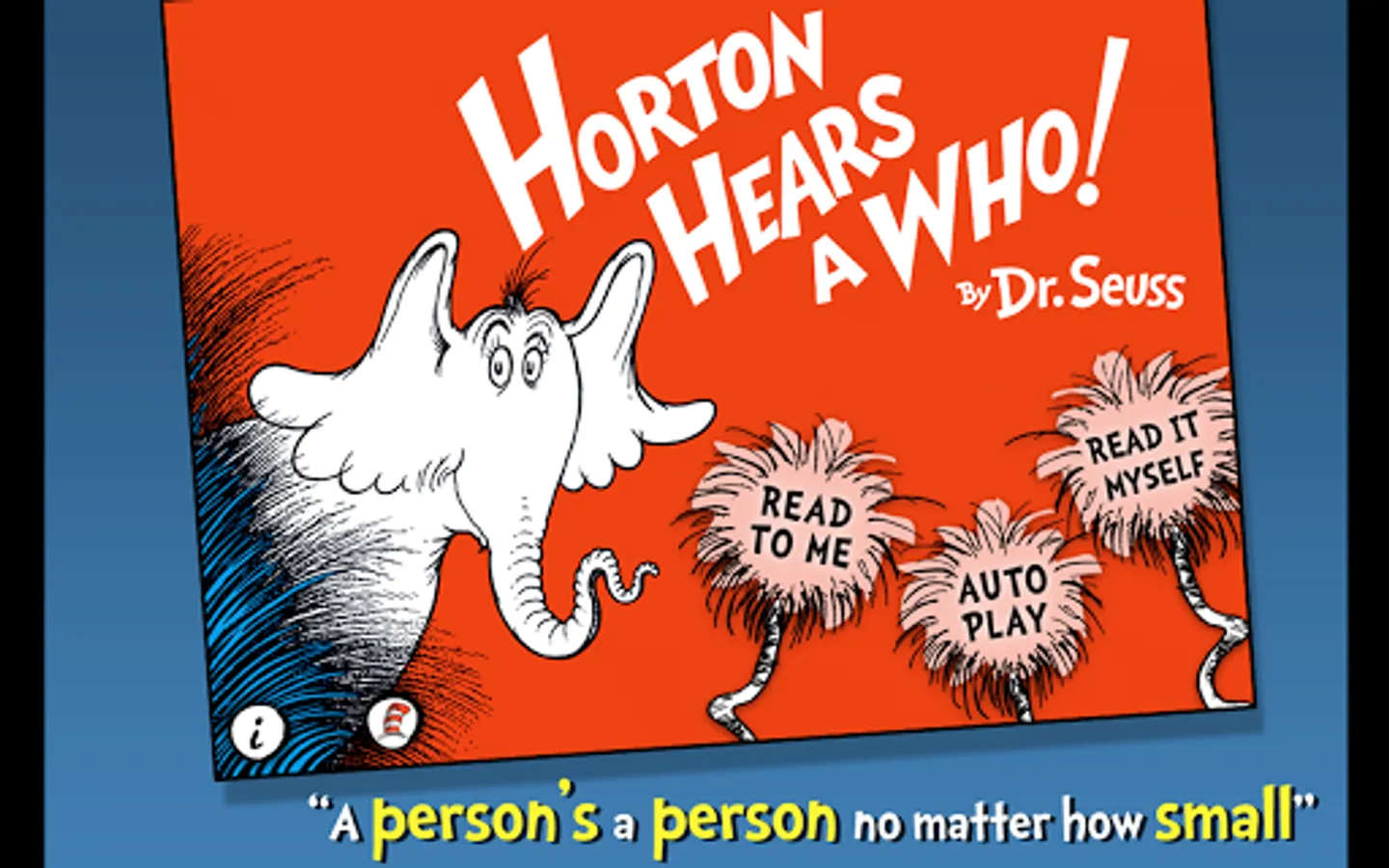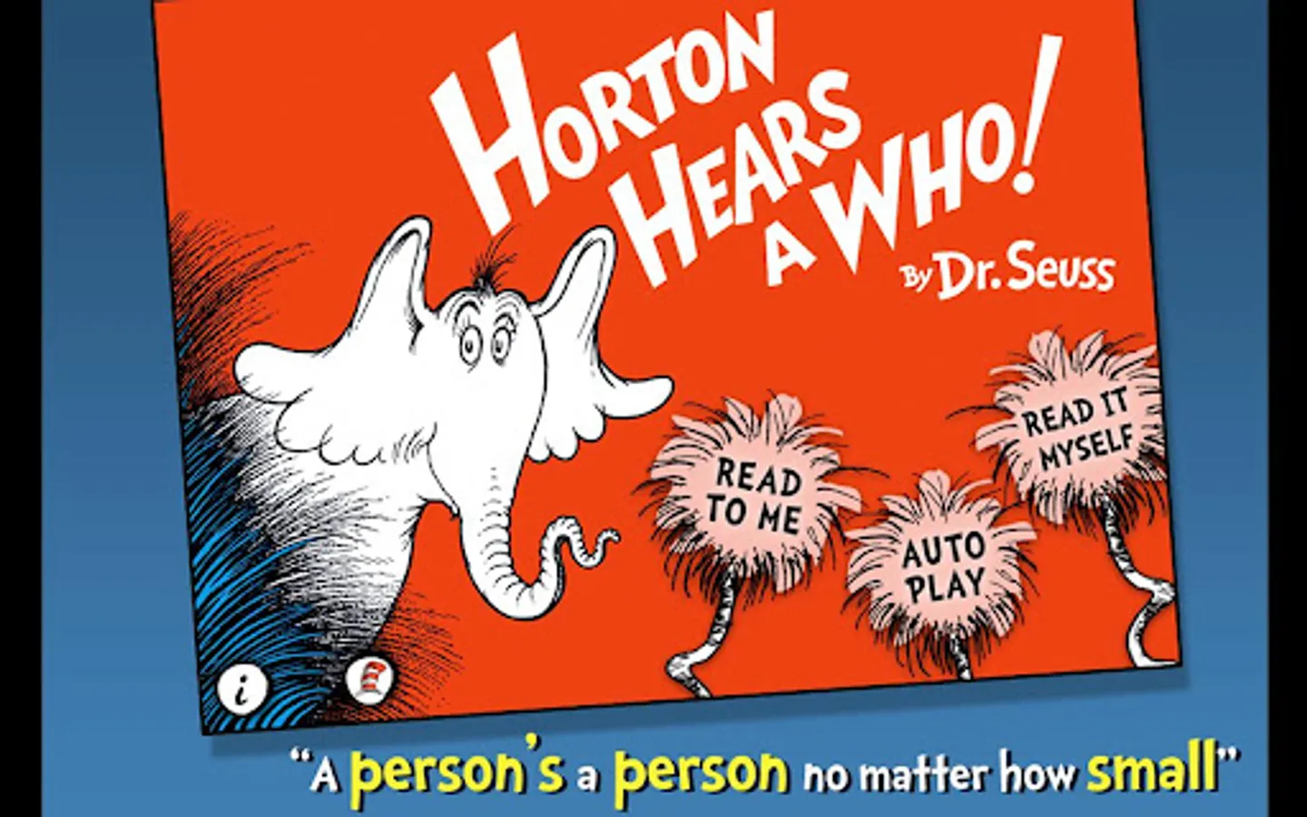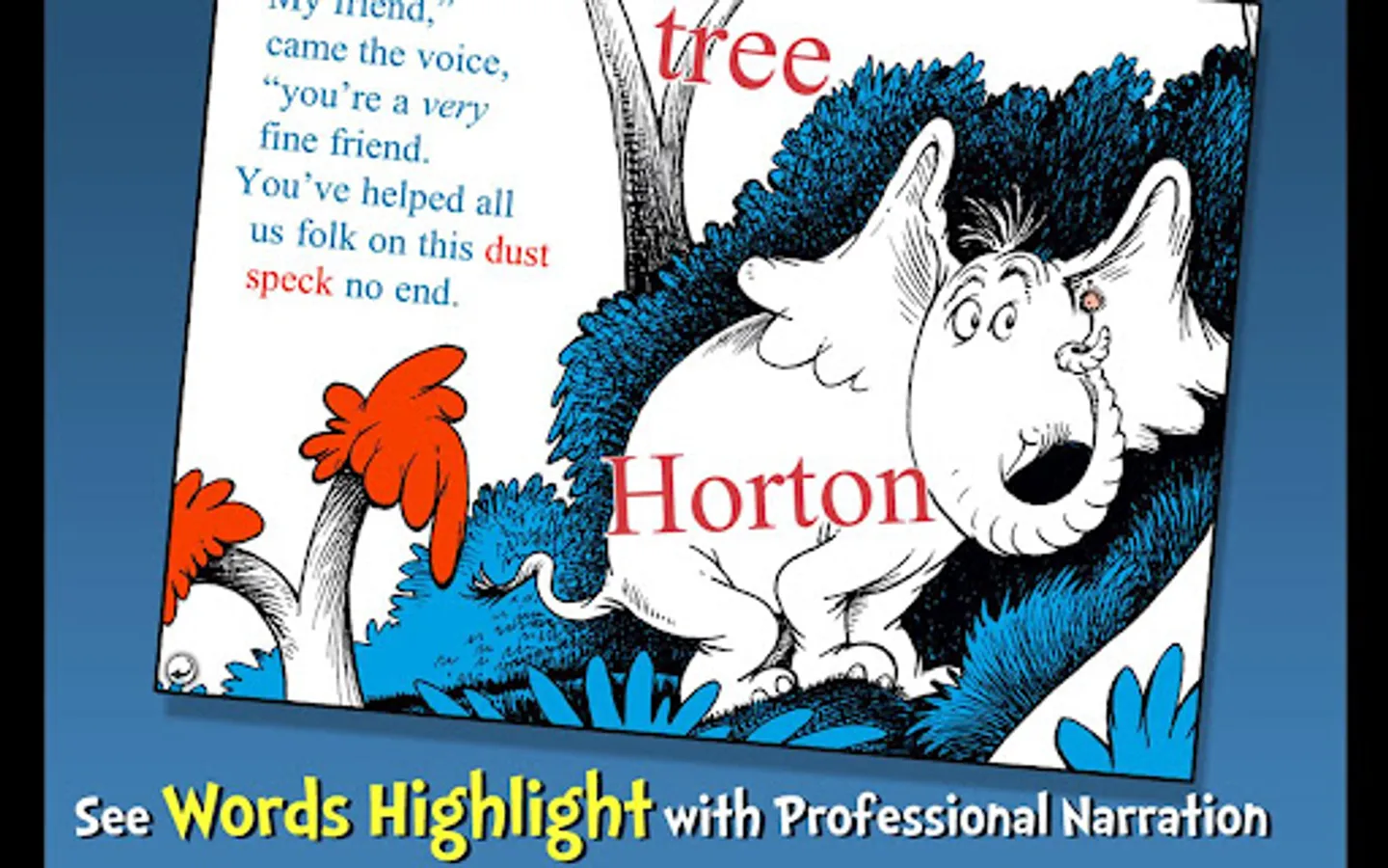 Join Horton the Elephant in this interactive book app from Dr. Seuss as he discovers a tiny planet called Whoville that he agrees to protect from harm, to the ridicule of the other animals. Explore pictures, learn new vocabulary, and follow along with three fun ways to read! Will Horton be able to protect Whoville from harm?