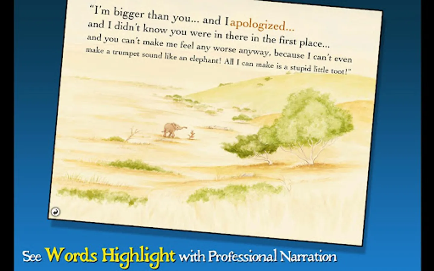 Join Ellison The Elephant in this interactive book app as he tries to make a big trumpet sound like his friends and sister, but all he gets is a little toot! Explore pictures, learn new vocabulary, and follow along with three fun ways to read! With encouragement from Mom and provocation from his imaginary friend, Weasel, will Ellison discover his very own voice?
