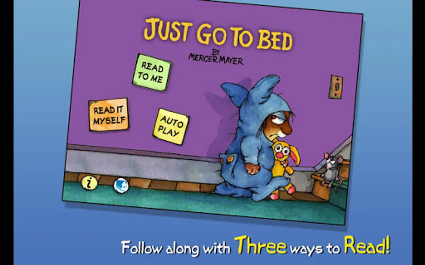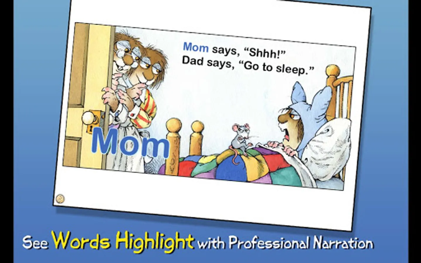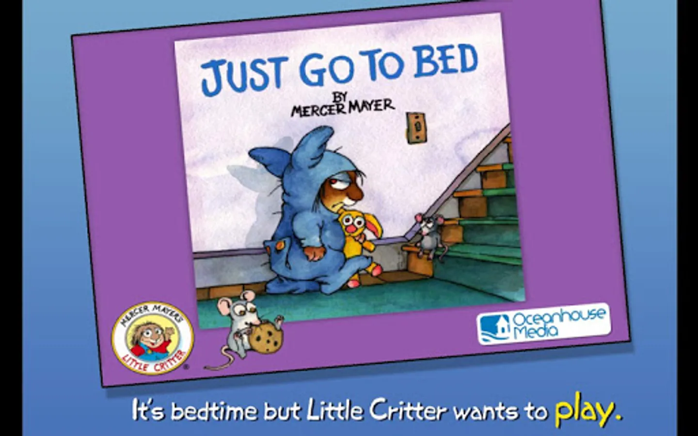 Join Little Critter in this interactive book app as he resists his father's efforts to get him ready for bed! Explore pictures, learn new vocabulary, and follow along with three fun ways to read! As he plays a space cadet when his father wants him in the bathtub, and a race car driver when it's time to put on pajamas, will Little Critter's parents ever get him to bed?