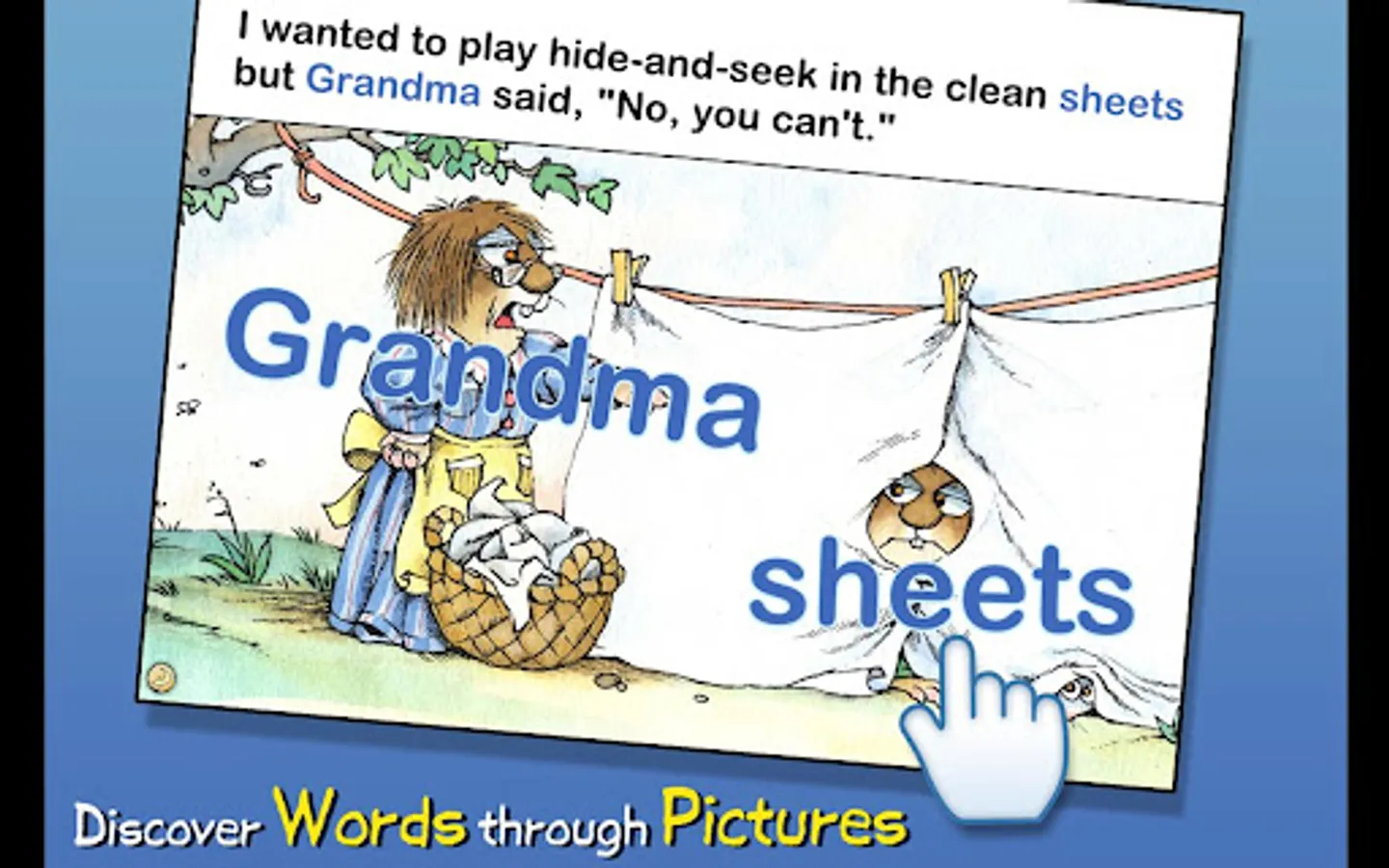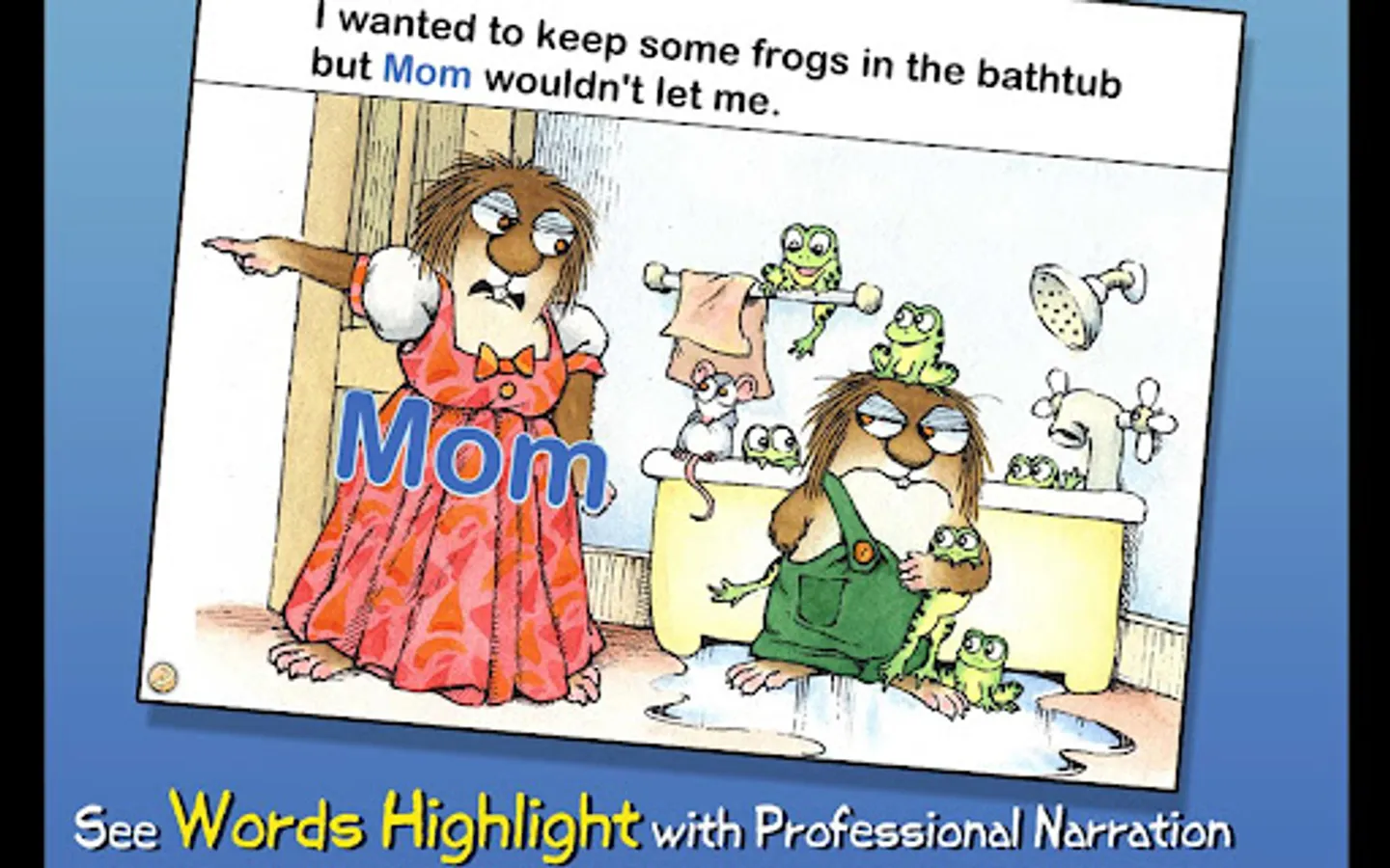 Join Little Critter in this interactive book app as he gets mad because everyone keeps telling him no! Explore pictures, learn new vocabulary, and follow along with three fun ways to read! Will Little Critter get so mad that he runs away, or will his bad day be salvaged with a little help from a friend?