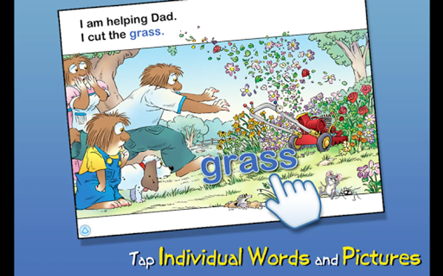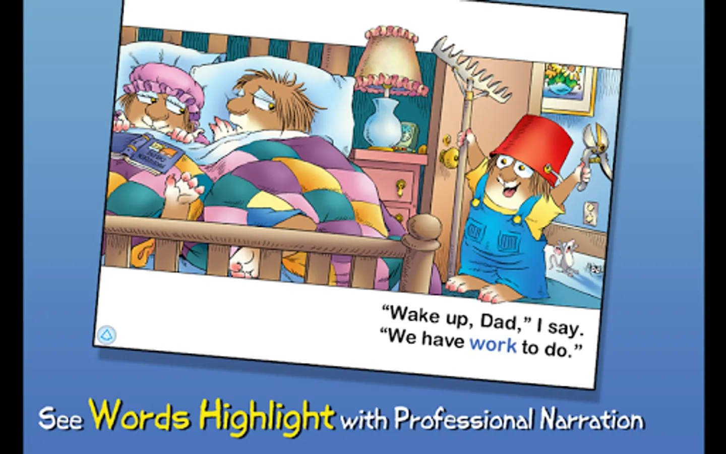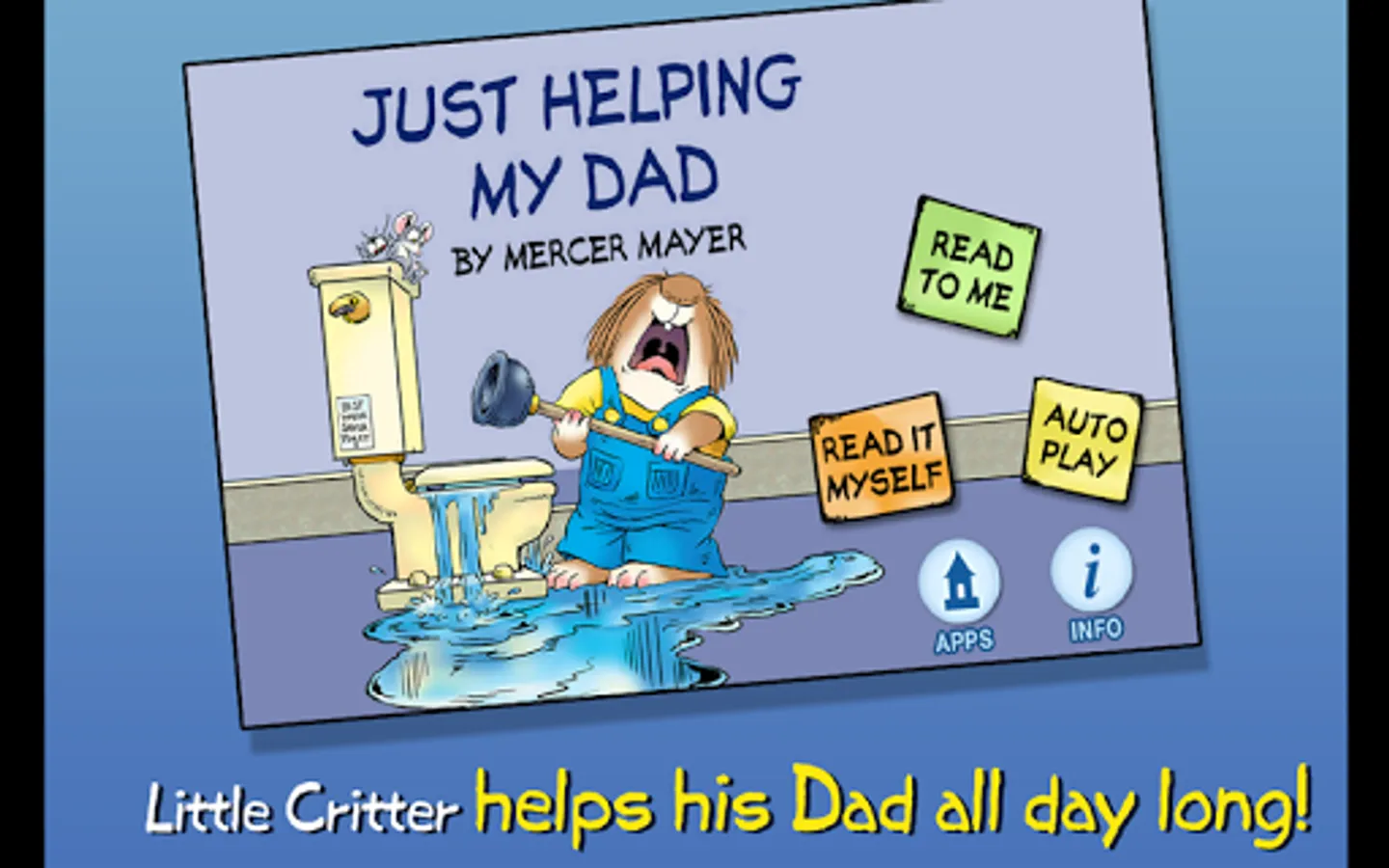 Join Little Critter in this interactive book app as he spends the day helping his dad! Explore pictures, learn new vocabulary, and follow along with three fun ways to read! From making breakfast to cutting the grass and washing the car, find out how Little Critter always tries his hardest!