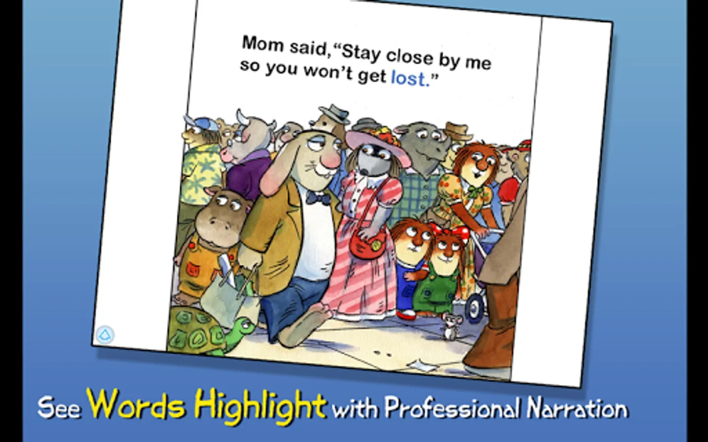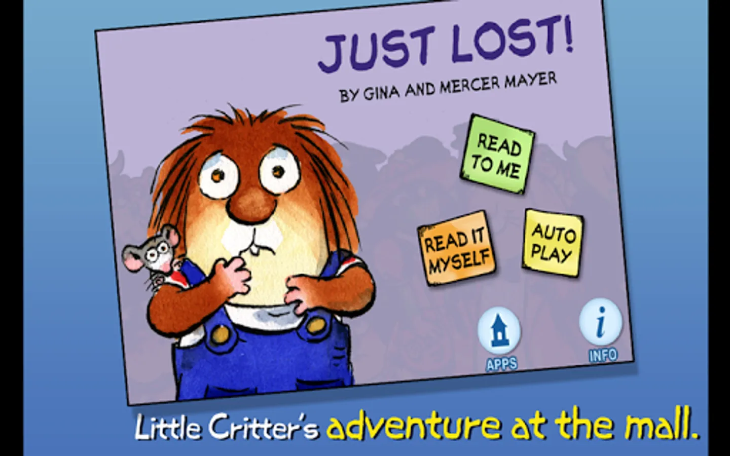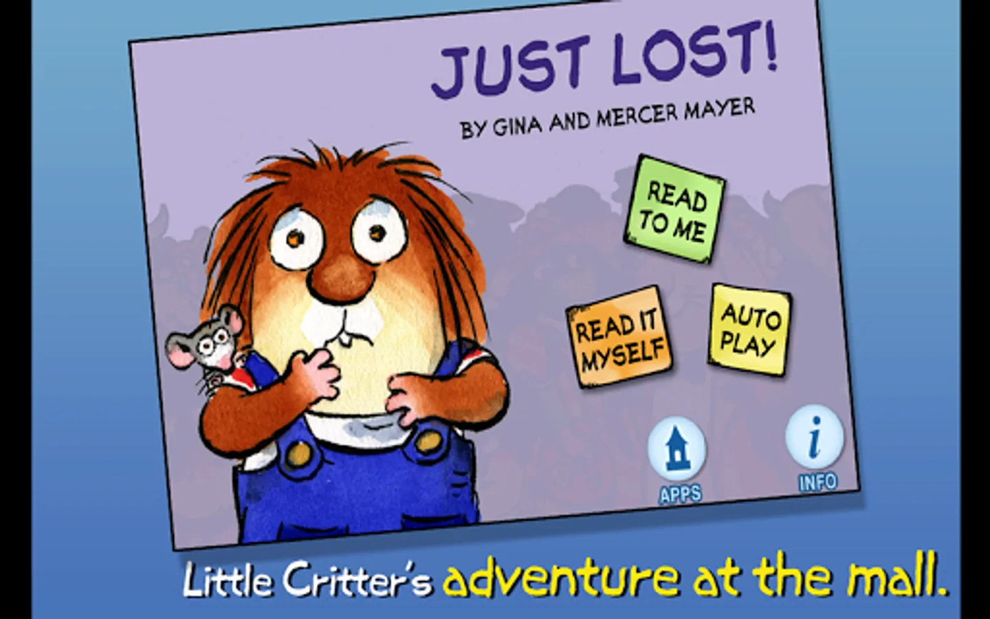 Join Little Critter in this interactive book app as he gets separated from his mom at the mall! Explore pictures, learn new vocabulary, and follow along with three fun ways to read! How will Little Critter ask for help and be reunited with his mother?