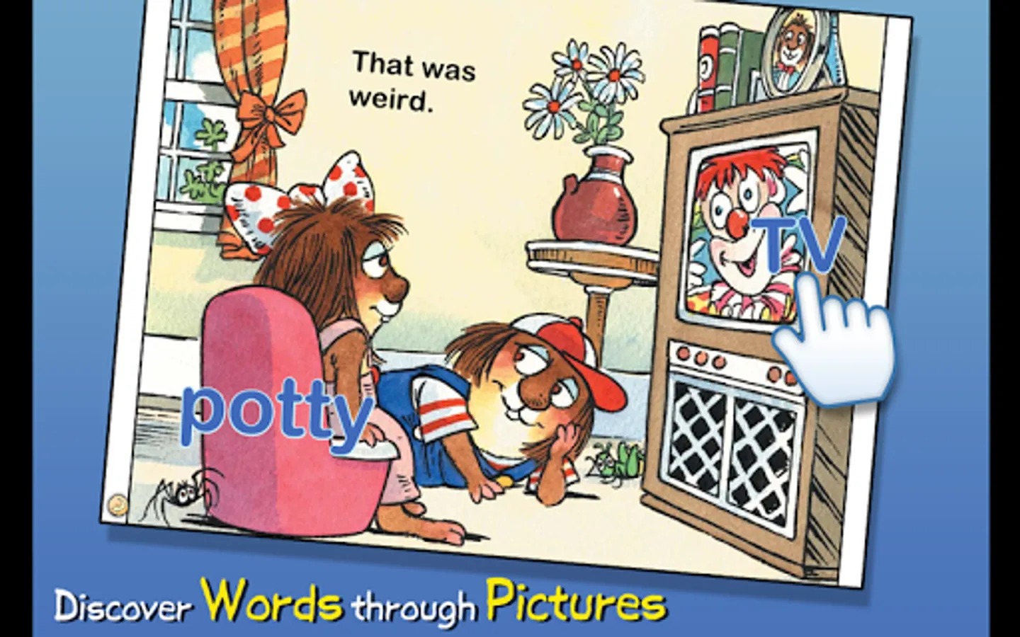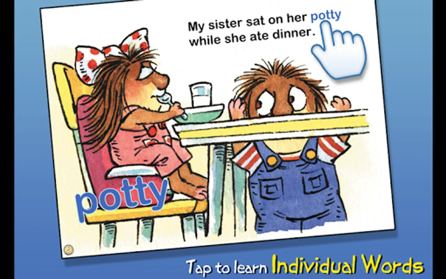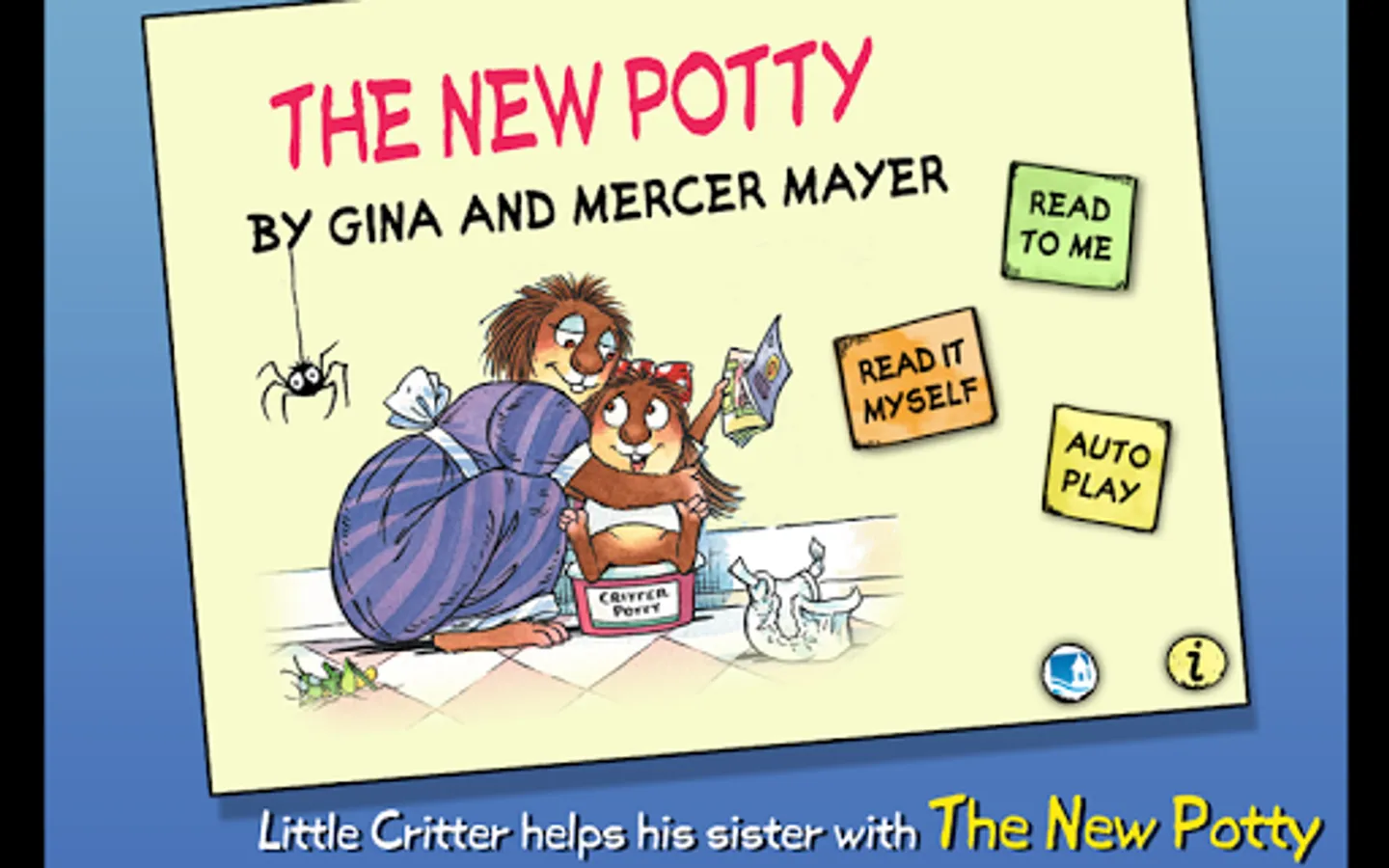 oin Little Critter's sister in this interactive book app as she learns how to use her brand new potty! Explore pictures, learn new vocabulary, and follow along with three fun ways to read! This charming tale of common potty training frustrations encourages children to keep trying.