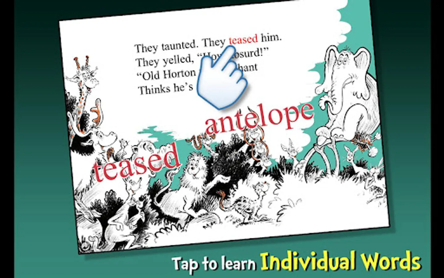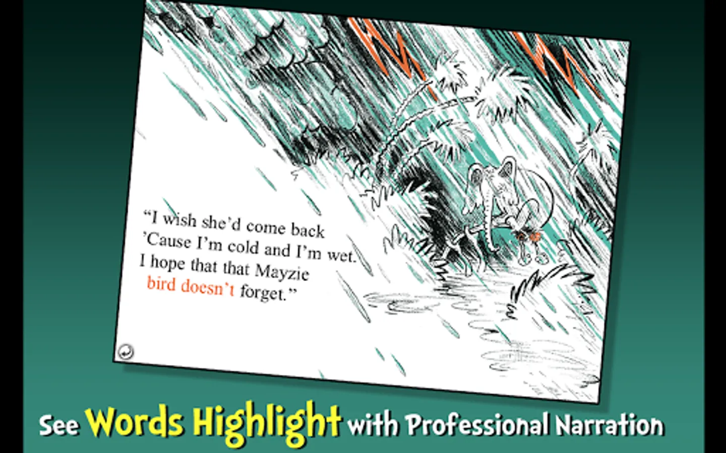 Join Horton the Elephant in this interactive book app from Dr. Seuss as he gets tricked into sitting on the egg of Mayzie, a lazy, irresponsible bird while she relocates to Palm Beach! Explore pictures, learn new vocabulary, and follow along with three fun ways to read! What will happen when the egg finally hatches?