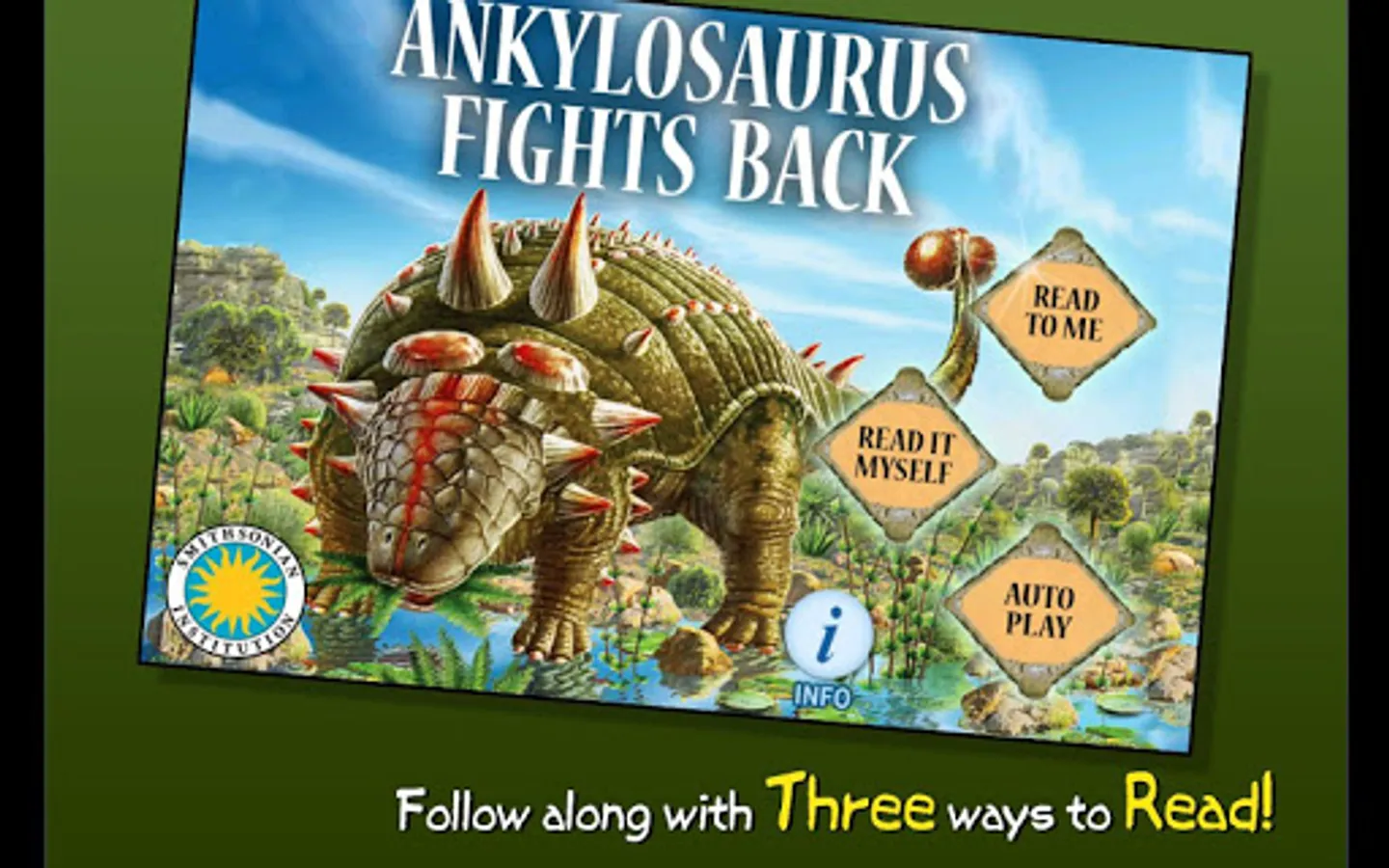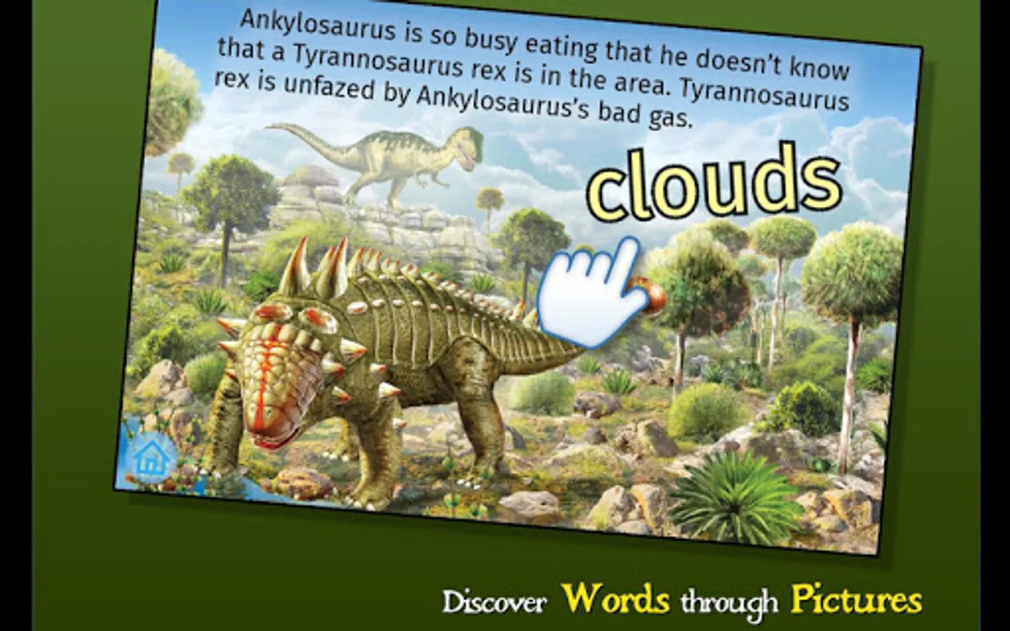 Join Ankylosaurus in this interactive book app as he is so busy eating that he doesn’t notice the huge T-rex that is watching him! Explore pictures, learn new vocabulary, and follow along with three fun ways to read! Will Ankylosaurus get away from the dangerous predator?
