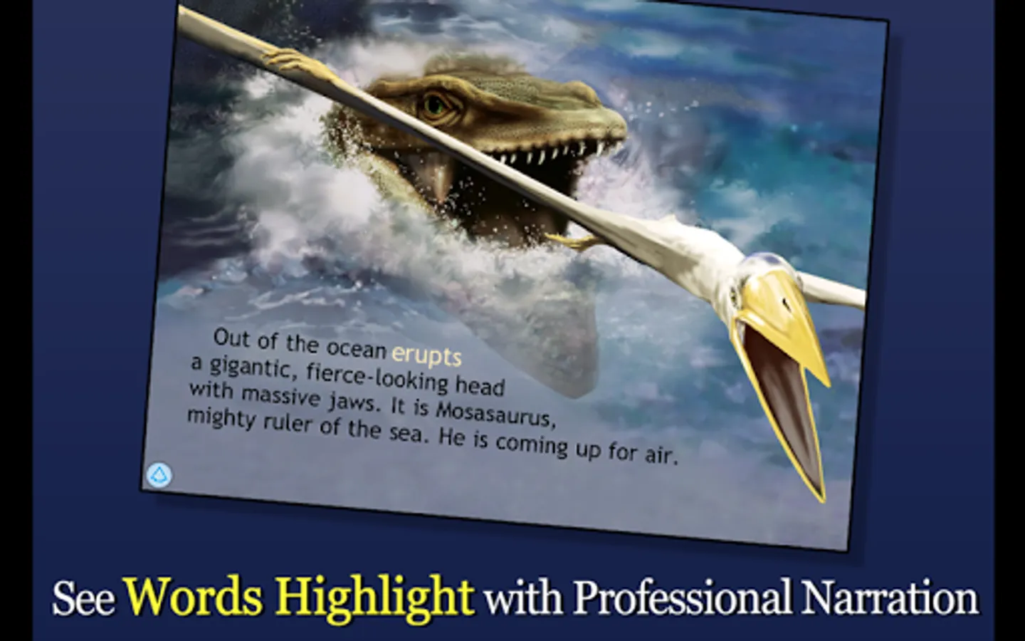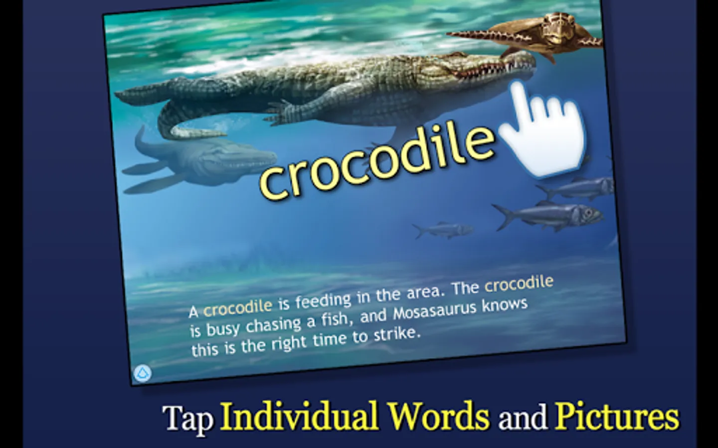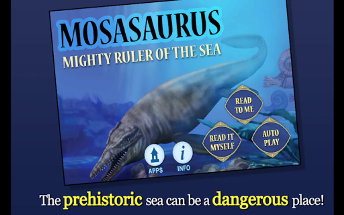 Dive inside the prehistoric sea and follow the story of the enormous Mosasaurus! Explore pictures, learn new vocabulary, and personalize the story with your own narration. Will Mosasaurus make his way through the water safely and find himself a tasty snack?
